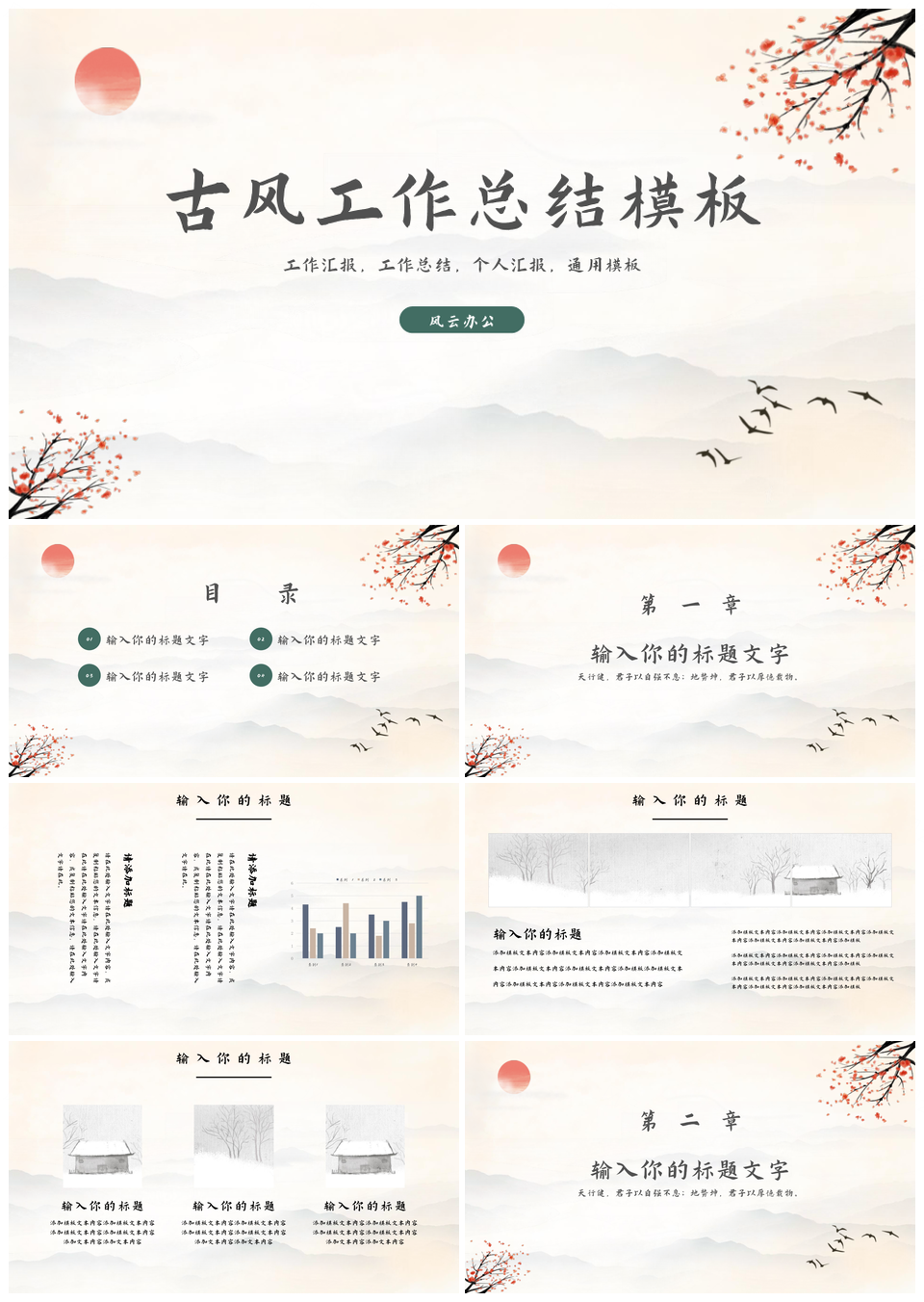 风云办公提供的简约国风个人工作总结汇报模板,下载格式为pptx,一共19页,作品中文字及图均可以修改和编辑,图片更改请在作品中右键图片并更换,文字修改请直接点击文字进行修改。