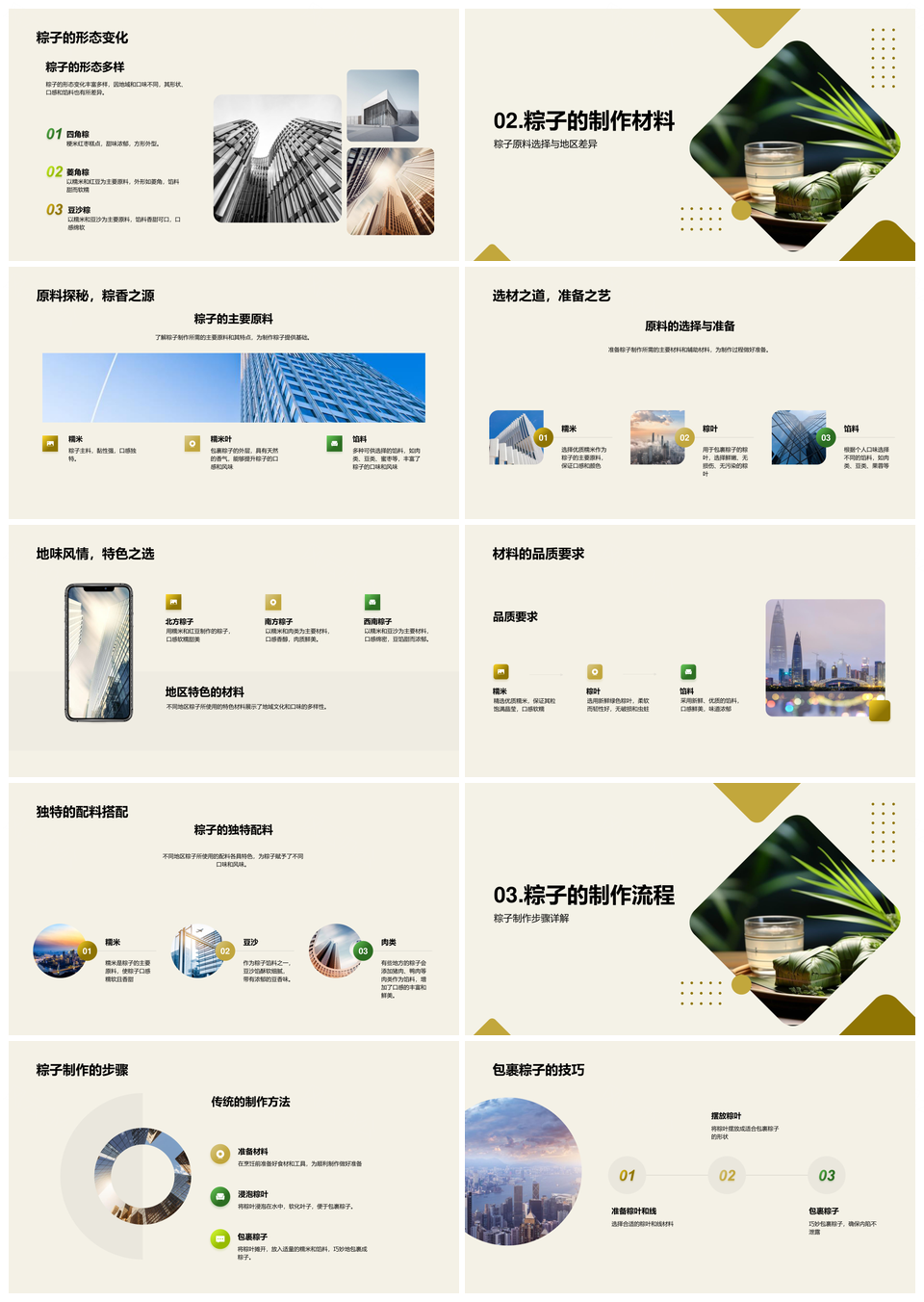这是一张粽子历史文化原料制作端午屈原地域差异PPT模板,包含粽子、历史文化、原料、制作、端午、屈原、地域差异等主题内容,也可用作粽子历史文化原料制作、历史文化原料制作端午、原料制作端午屈原、制作端午屈原地域、端午屈原地域差异、粽子历史文化原料、历史文化原料制作、原料制作端午、制作端午屈原、端午屈原地域、屈原地域差异、粽子历史文化、历史文化原料、原料制作、制作端午等PPT场景使用。 风云办公提供的粽子历史文化原料制作端午屈原地域差异PPT模板,下载格式为pptx,一共33页,作品中文字及图均可以修改和编辑,图片更改请在作品中右键图片并更换,文字修改请直接点击文字进行修改。