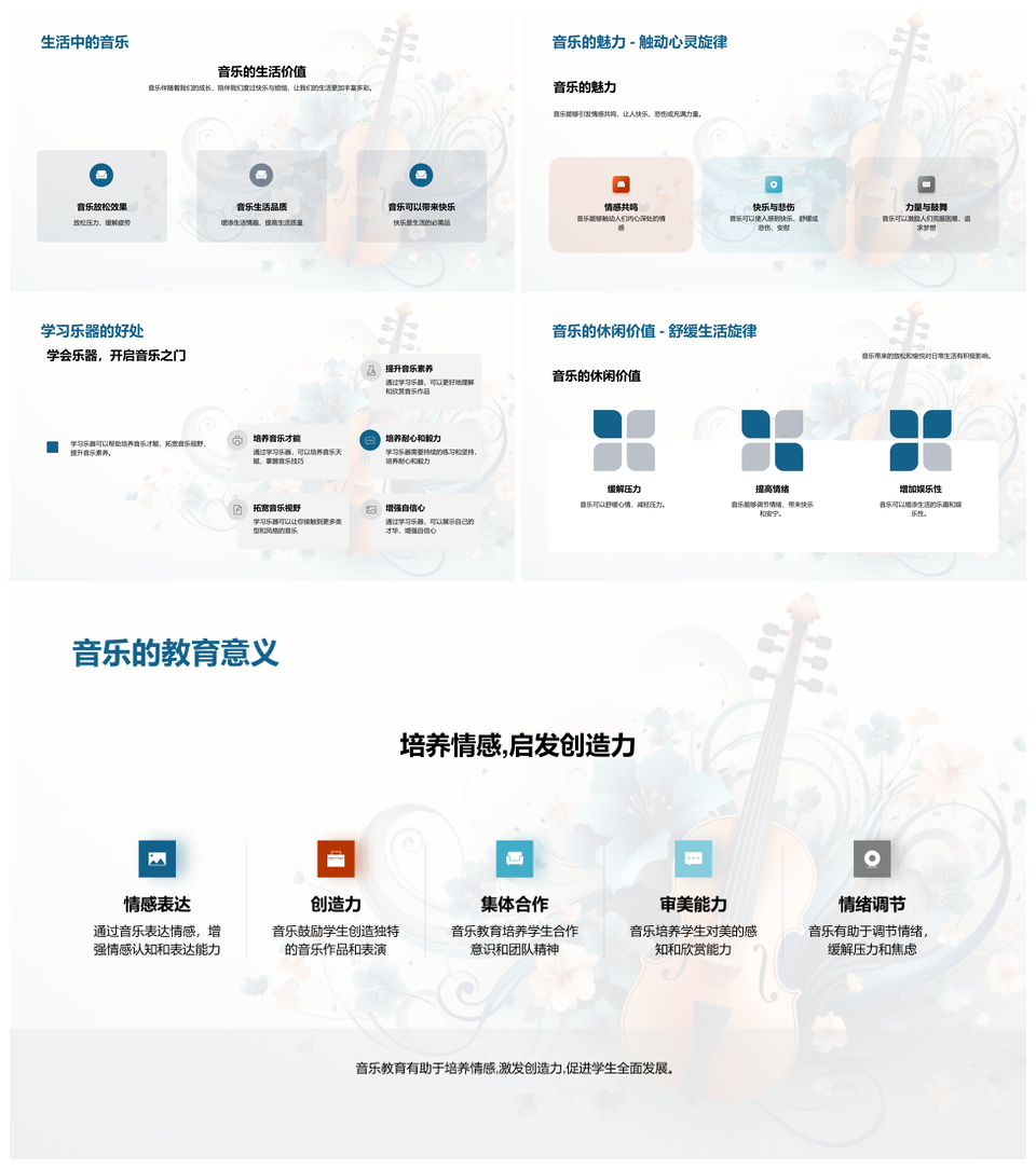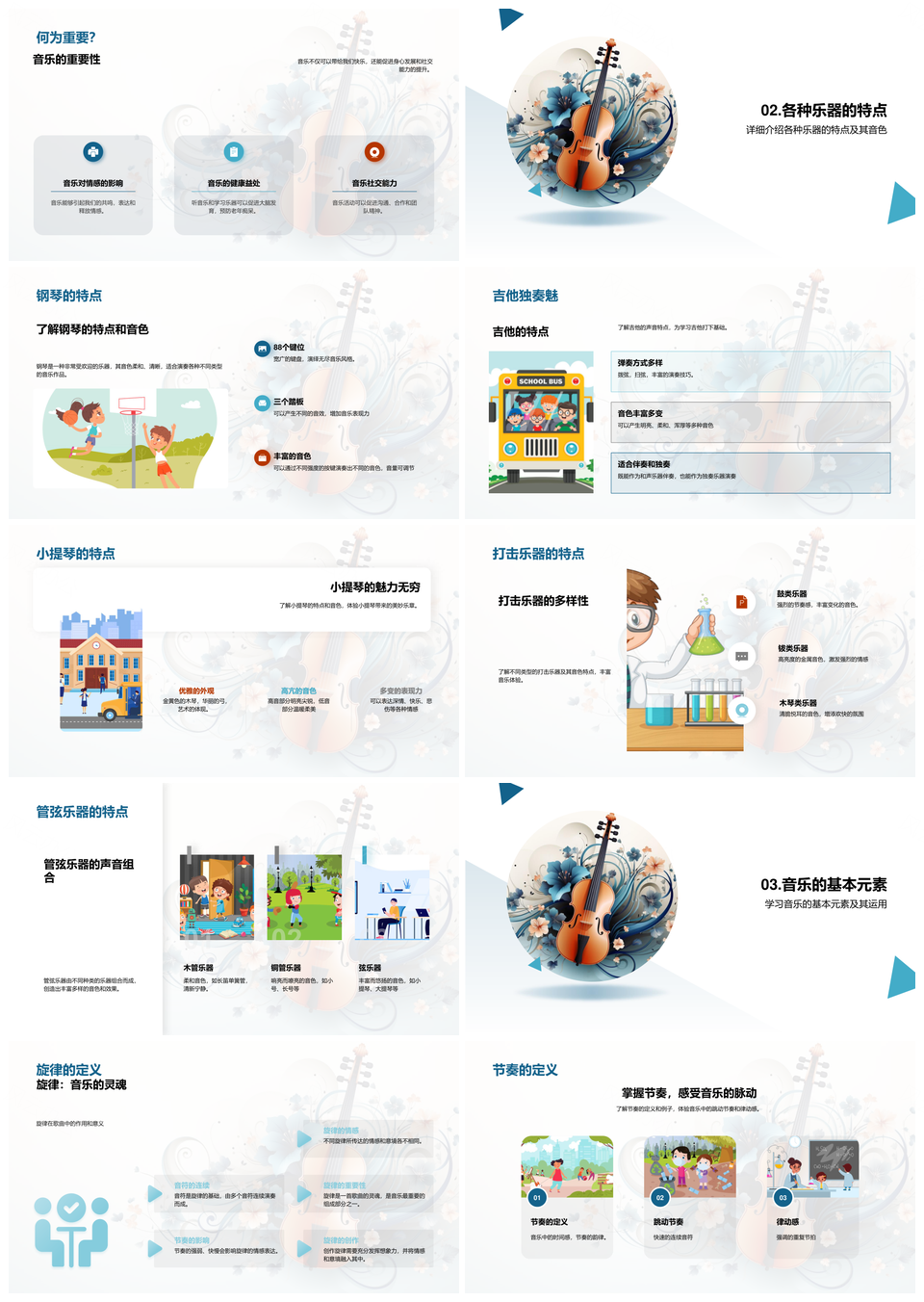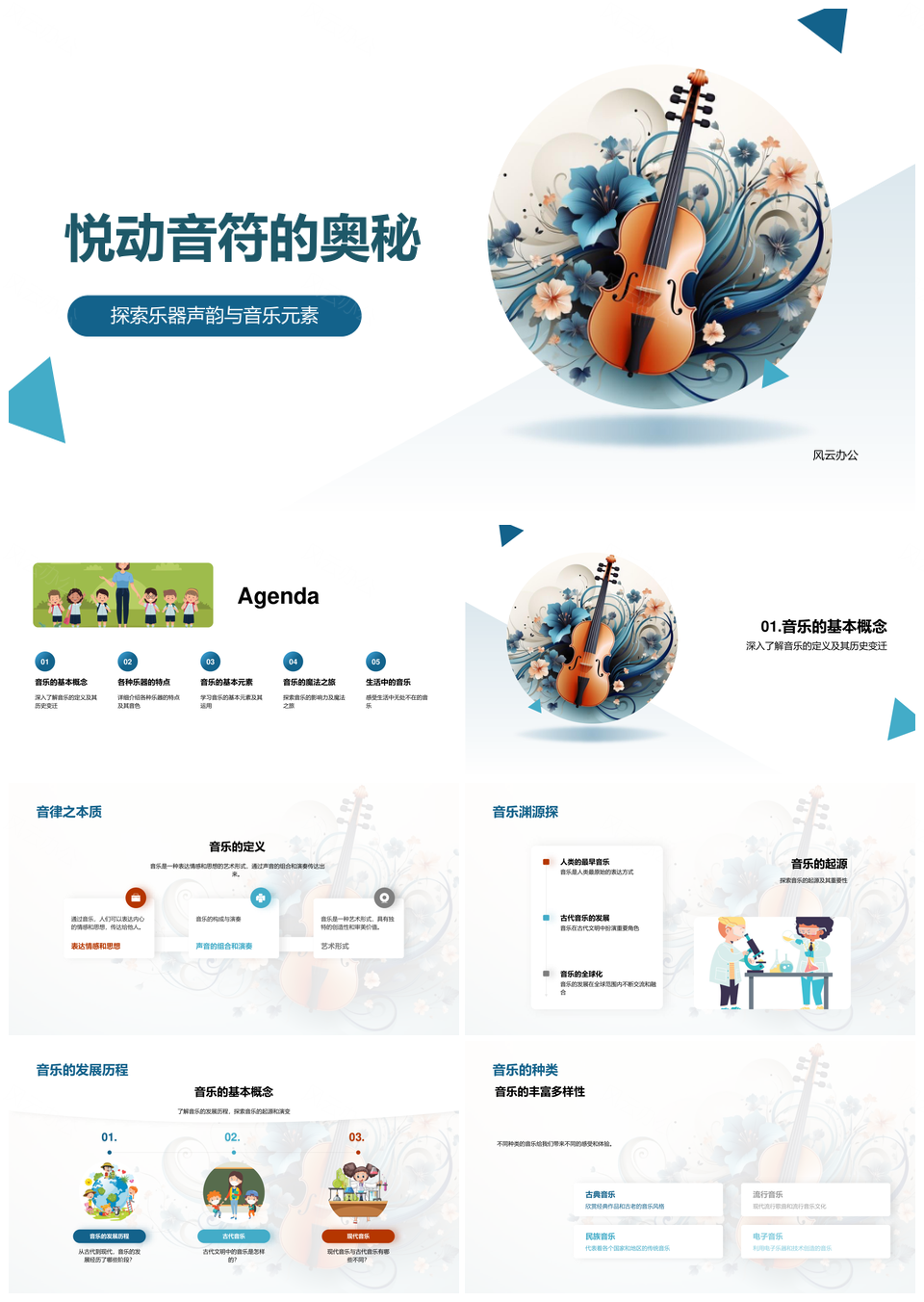 风云办公提供的悦动音符乐器声韵探秘音乐本源PPT模板,下载格式为pptx,一共33页,作品中文字及图均可以修改和编辑,图片更改请在作品中右键图片并更换,文字修改请直接点击文字进行修改。