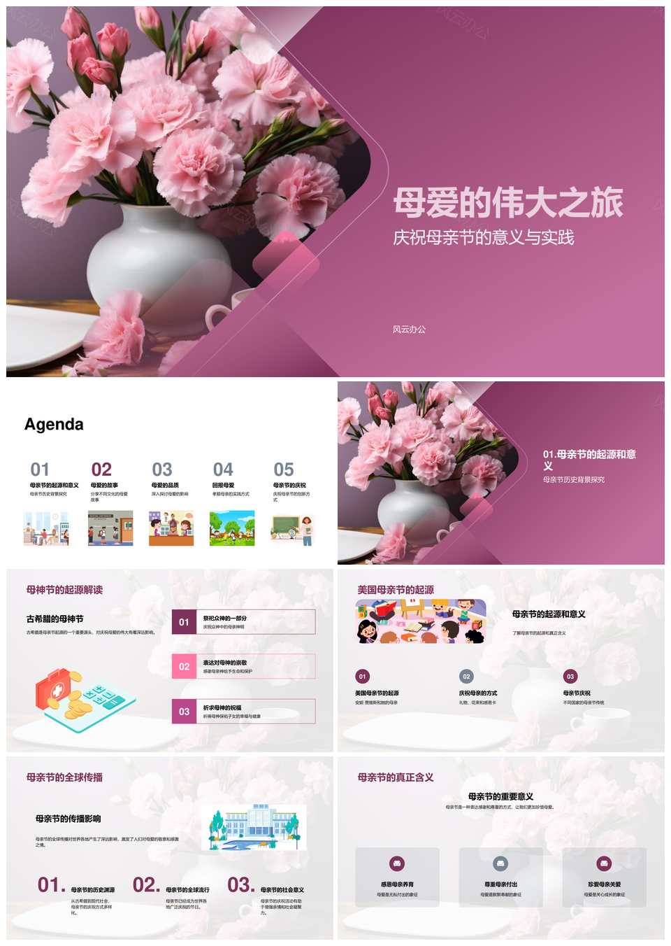 风云办公提供的母爱无私母亲节历史康乃馨孝道影响PPT模板,下载格式为pptx,一共33页,作品中文字及图均可以修改和编辑,图片更改请在作品中右键图片并更换,文字修改请直接点击文字进行修改。