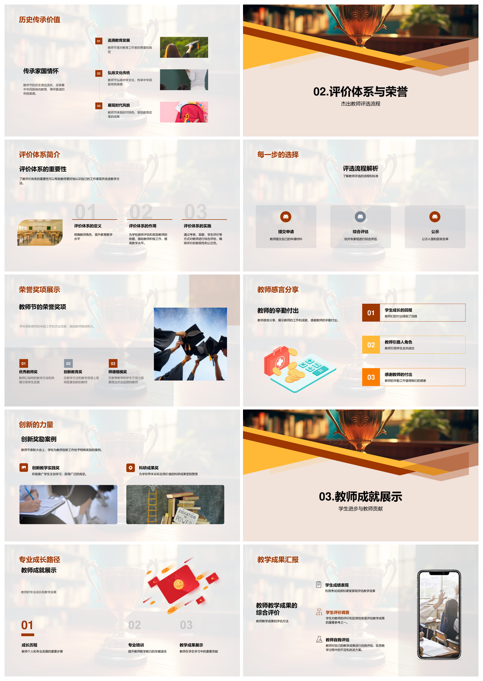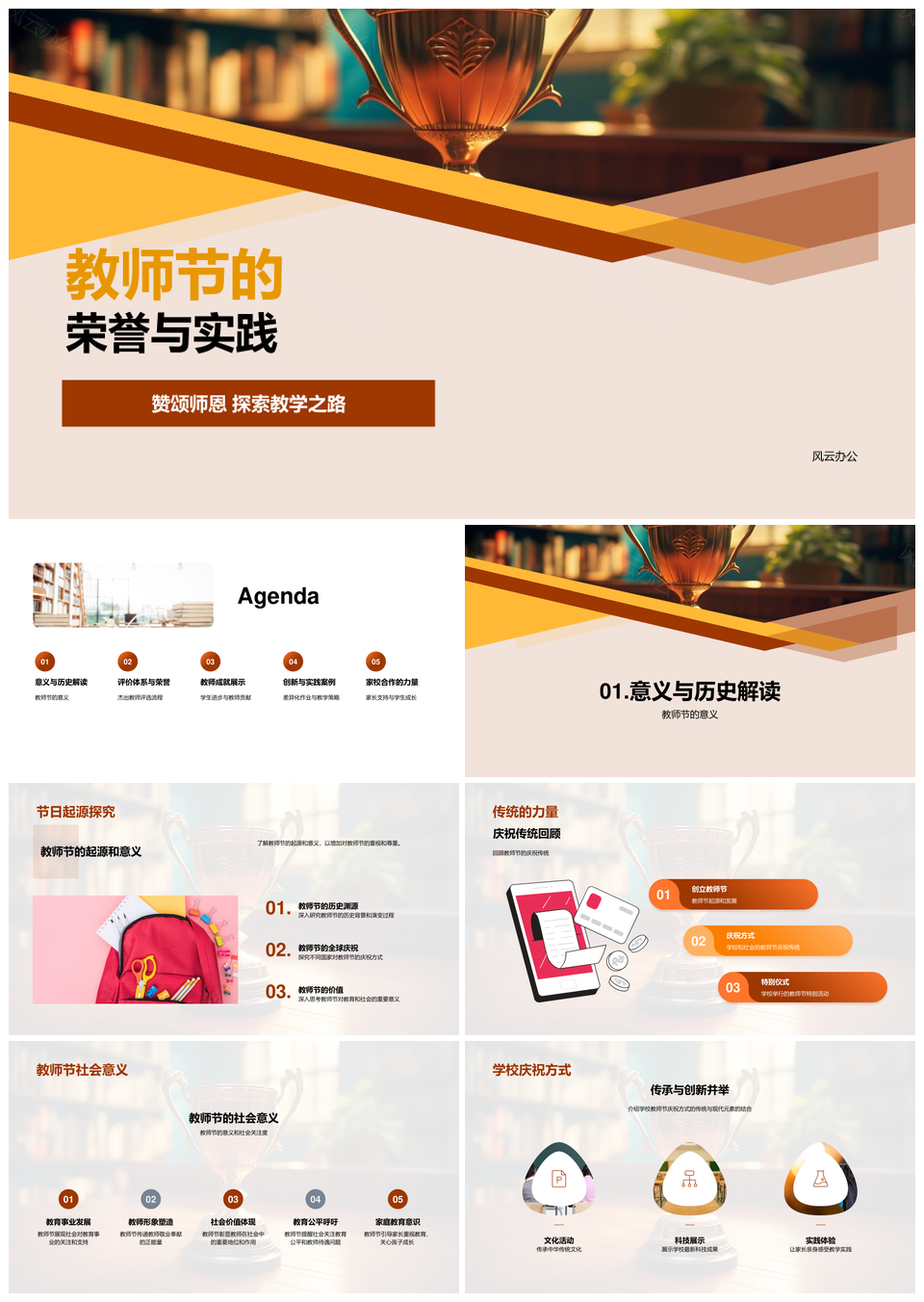 风云办公提供的教师节荣誉奖杯教学成长实践成果PPT模板,下载格式为pptx,一共33页,作品中文字及图均可以修改和编辑,图片更改请在作品中右键图片并更换,文字修改请直接点击文字进行修改。