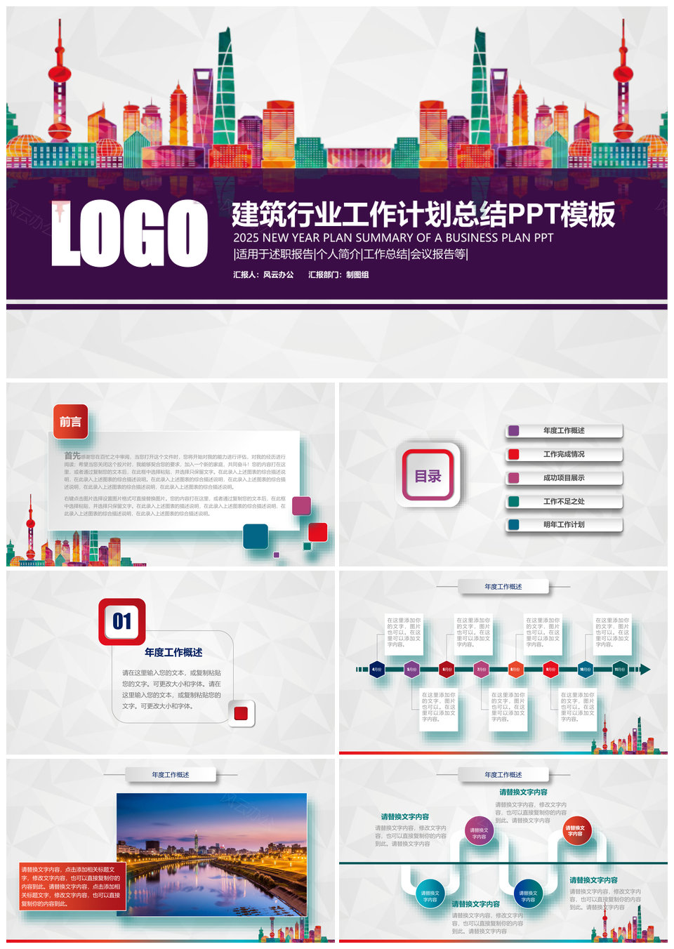 风云办公提供的2025建筑行业工作计划总结PPT模板,下载格式为pptx,一共39页,作品中文字及图均可以修改和编辑,图片更改请在作品中右键图片并更换,文字修改请直接点击文字进行修改。