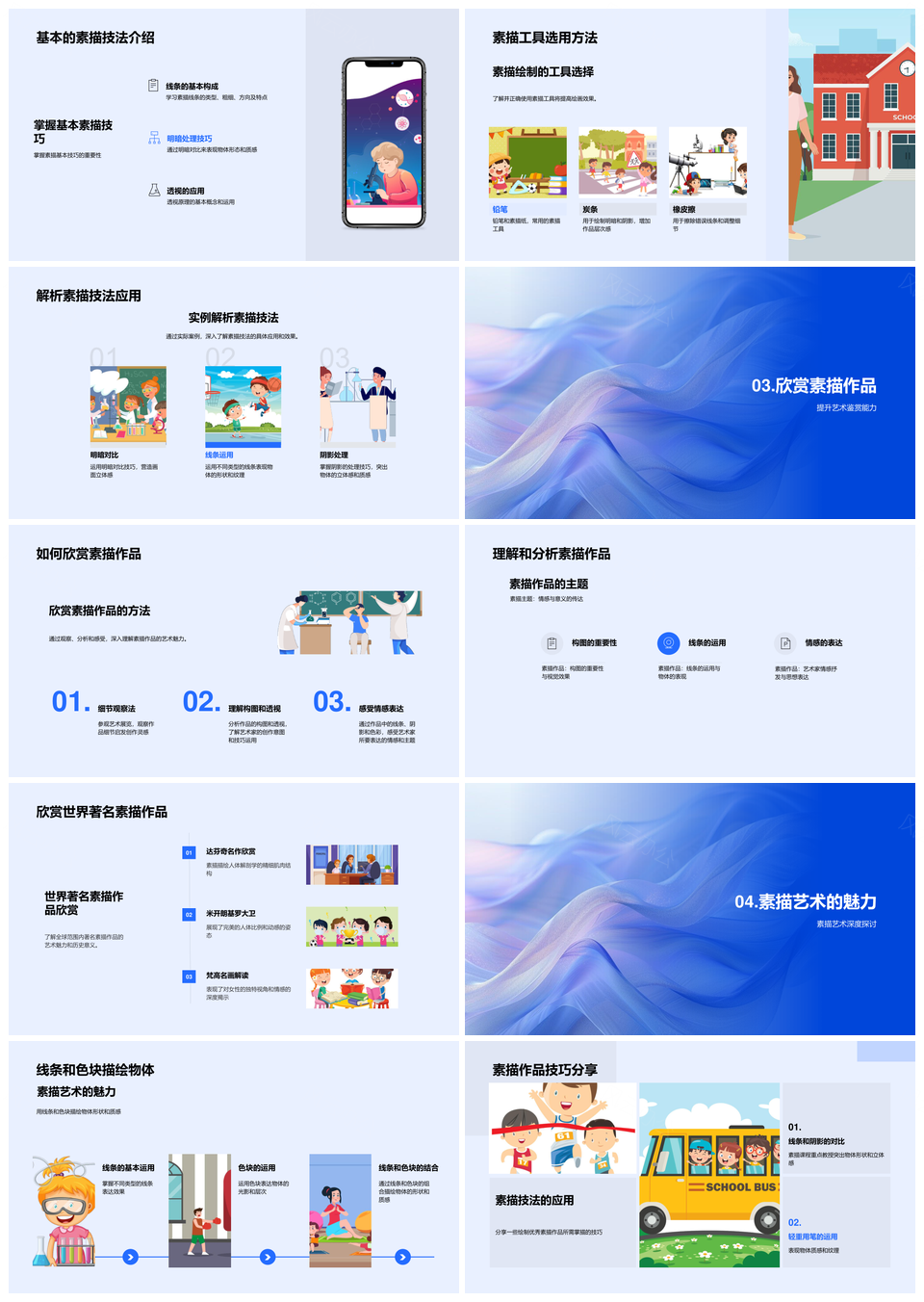 风云办公提供的素描艺术起源技法工具实例名作教学PPT模板,下载格式为pptx,一共23页,作品中文字及图均可以修改和编辑,图片更改请在作品中右键图片并更换,文字修改请直接点击文字进行修改。