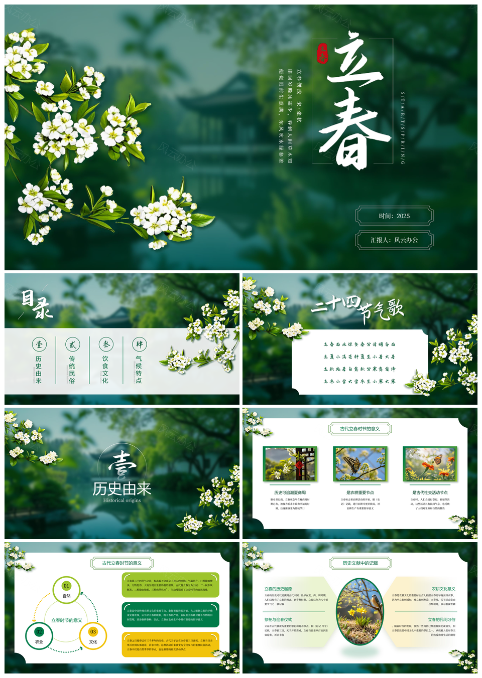 风云办公提供的2025绿色中国风二十四节气立春PPT模板,下载格式为pptx,一共20页,作品中文字及图均可以修改和编辑,图片更改请在作品中右键图片并更换,文字修改请直接点击文字进行修改。