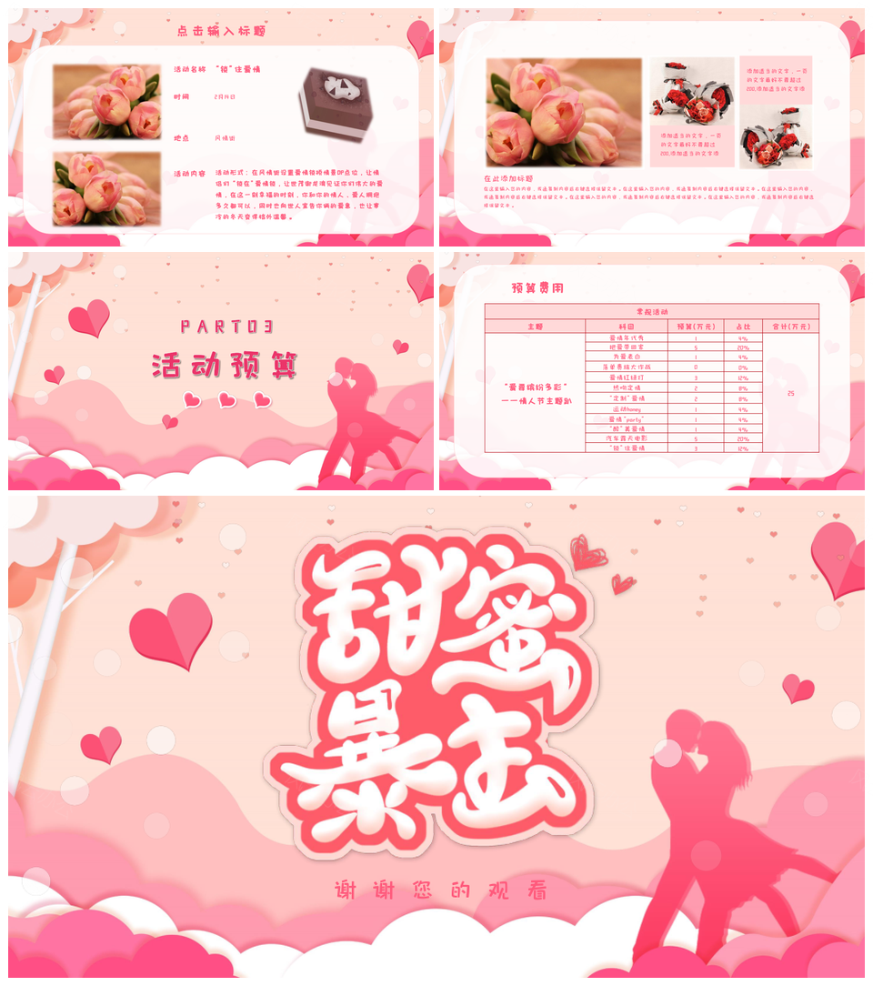 粉色情人节浪漫甜蜜活动策划推广宣传PPT模板