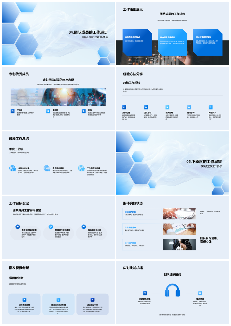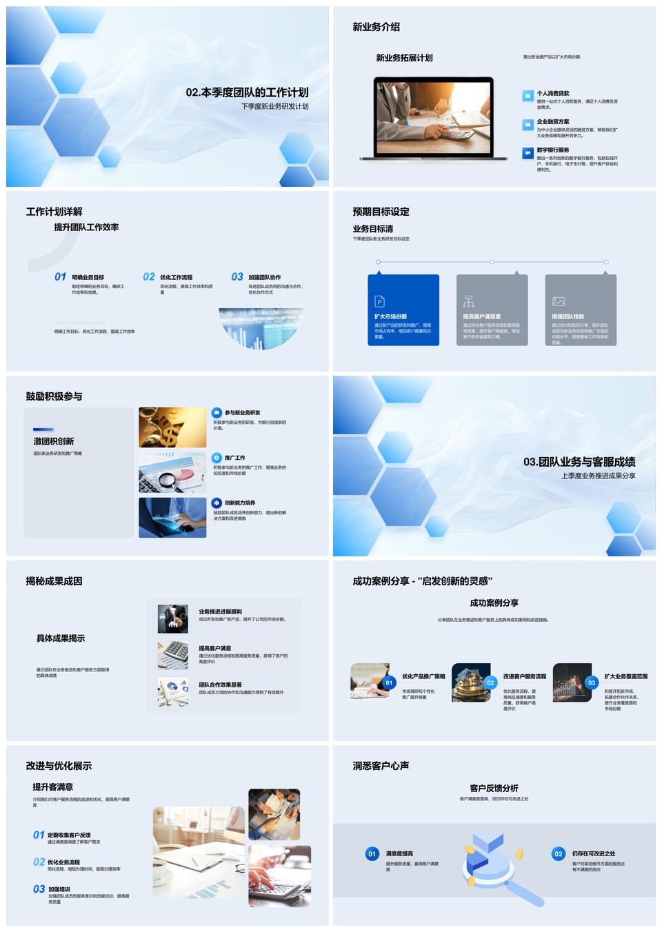 季度业务报告展望团队新业务研发计划推进客户满意服务PPT模板推荐