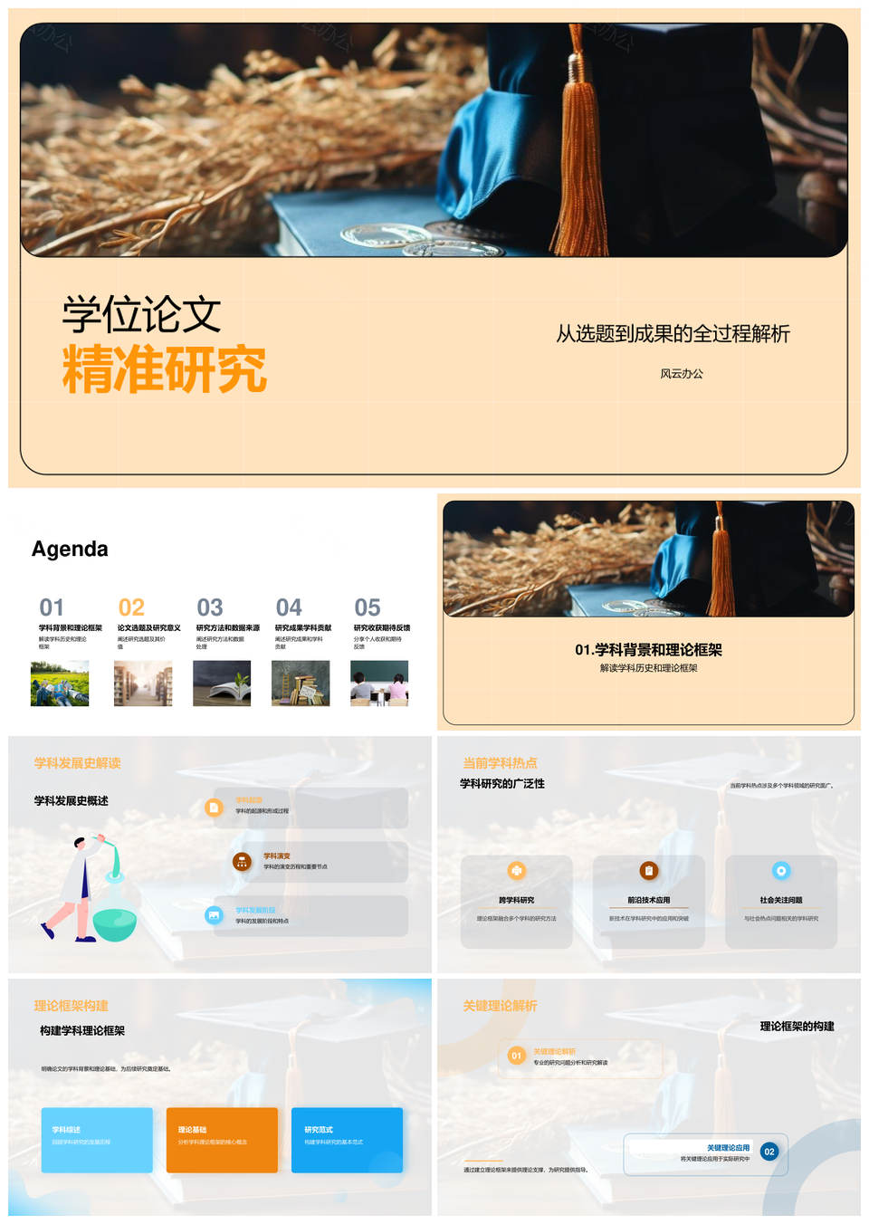 学位论文精准研究学科理论方法数据成果贡献毕业帽PPT模板
