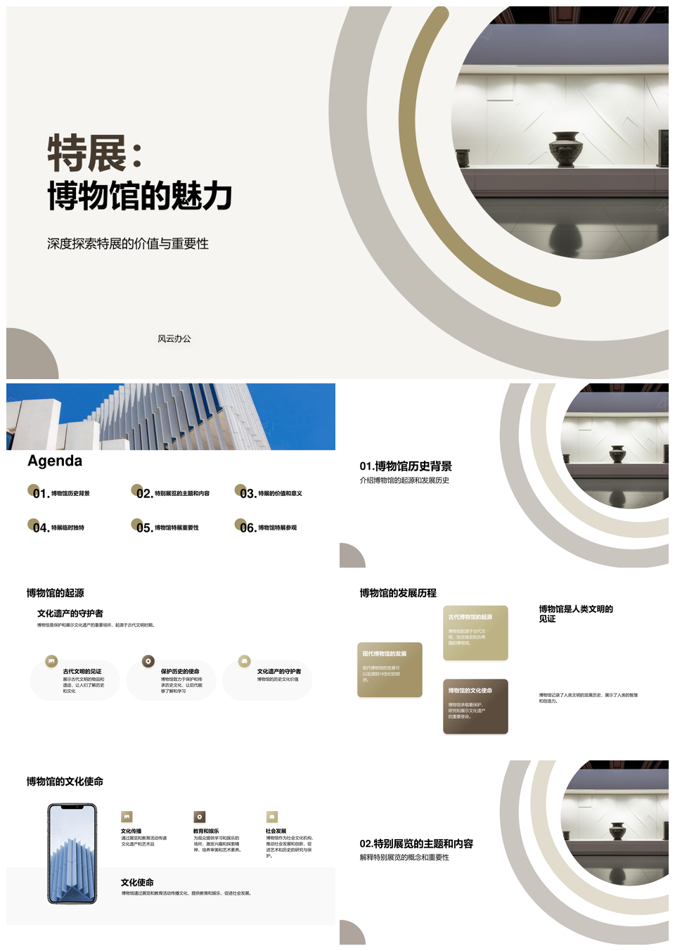 风云办公提供的博物馆特展诠释多元历史艺术文化使命PPT模板,下载格式为pptx,一共31页,作品中文字及图均可以修改和编辑,图片更改请在作品中右键图片并更换,文字修改请直接点击文字进行修改。