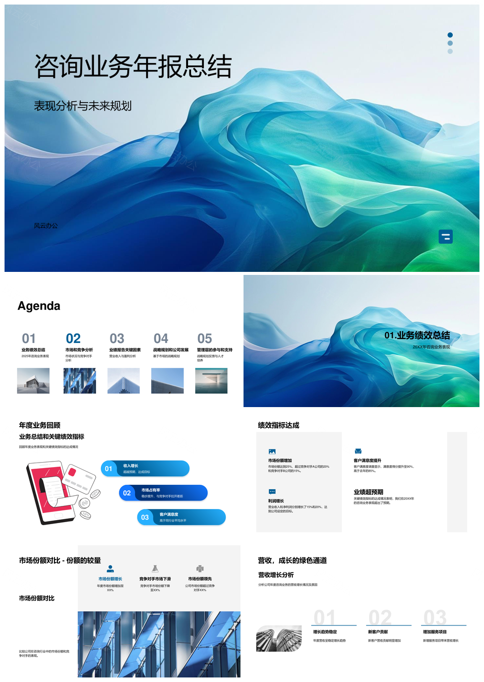 2025咨询业务年报表现未来规划指标市占营收竞对PPT模板推荐