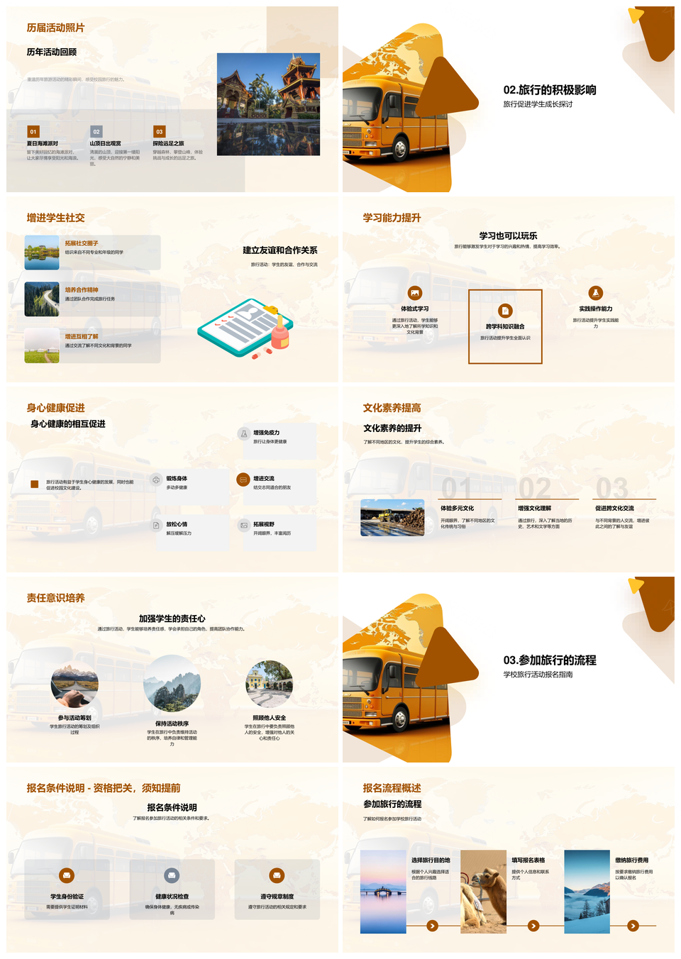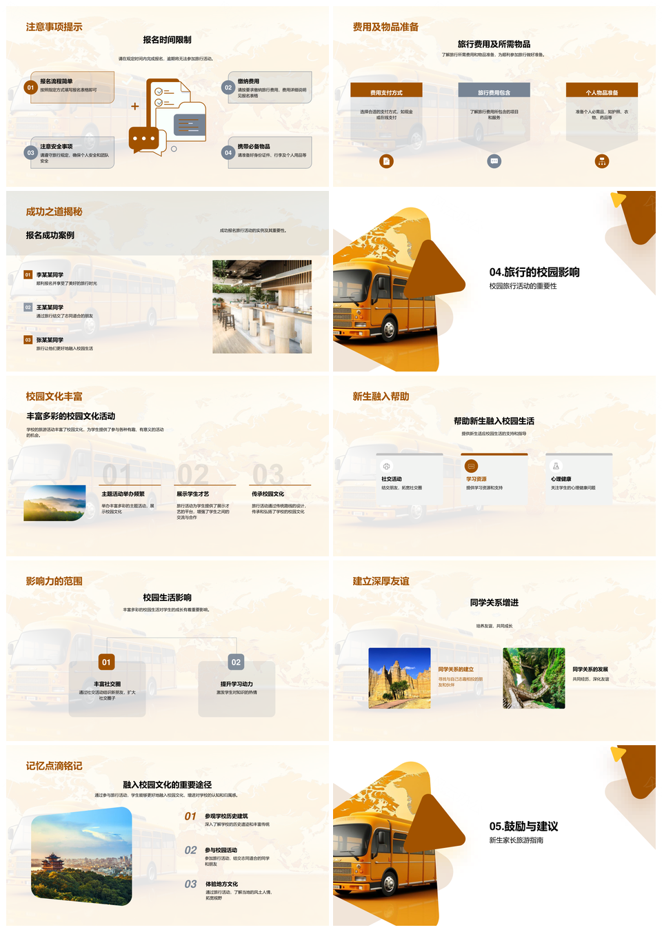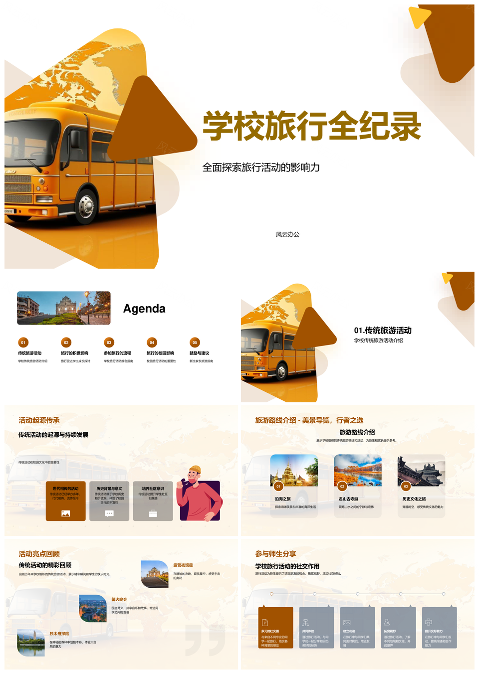 风云办公提供的新生校车导引学校传统旅行助发展PPT模板,下载格式为pptx,一共33页,作品中文字及图均可以修改和编辑,图片更改请在作品中右键图片并更换,文字修改请直接点击文字进行修改。
