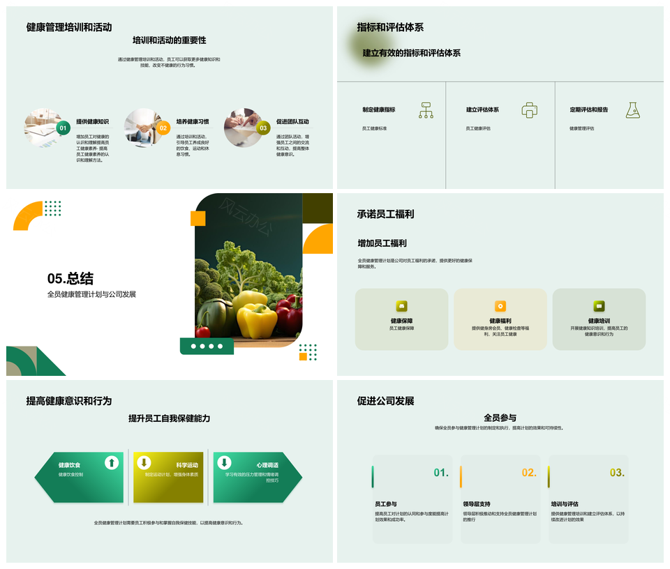 这是一张全员健康管理提升员工健康意识福利防疾病伤害PPT模板,包含全员健康管理、提升、员工、健康意识、福利、防、疾病伤害等主题内容,也可用作全员健康管理提升员工健康意识、健康管理提升员工健康意识福利、提升员工健康意识福利防疾病、员工健康意识福利防疾病伤害、全员健康管理提升员工健康、健康管理提升员工健康意识福利、员工健康意识福利防疾病、全员健康管理提升员工、健康管理提升健康意识福利、提升健康意识福利防疾病、健康意识福利防疾病伤害、全员健康管理提升、健康管理提升健康意识、员工健康意识福利、福利防疾病伤害、健康管理防疾病伤害等PPT场景使用。 风云办公提供的全员健康管理提升员工健康意识福利防疾病伤害PPT模板,下载格式为pptx,一共24页,作品中文字及图均可以修改和编辑,图片更改请在作品中右键图片并更换,文字修改请直接点击文字进行修改。