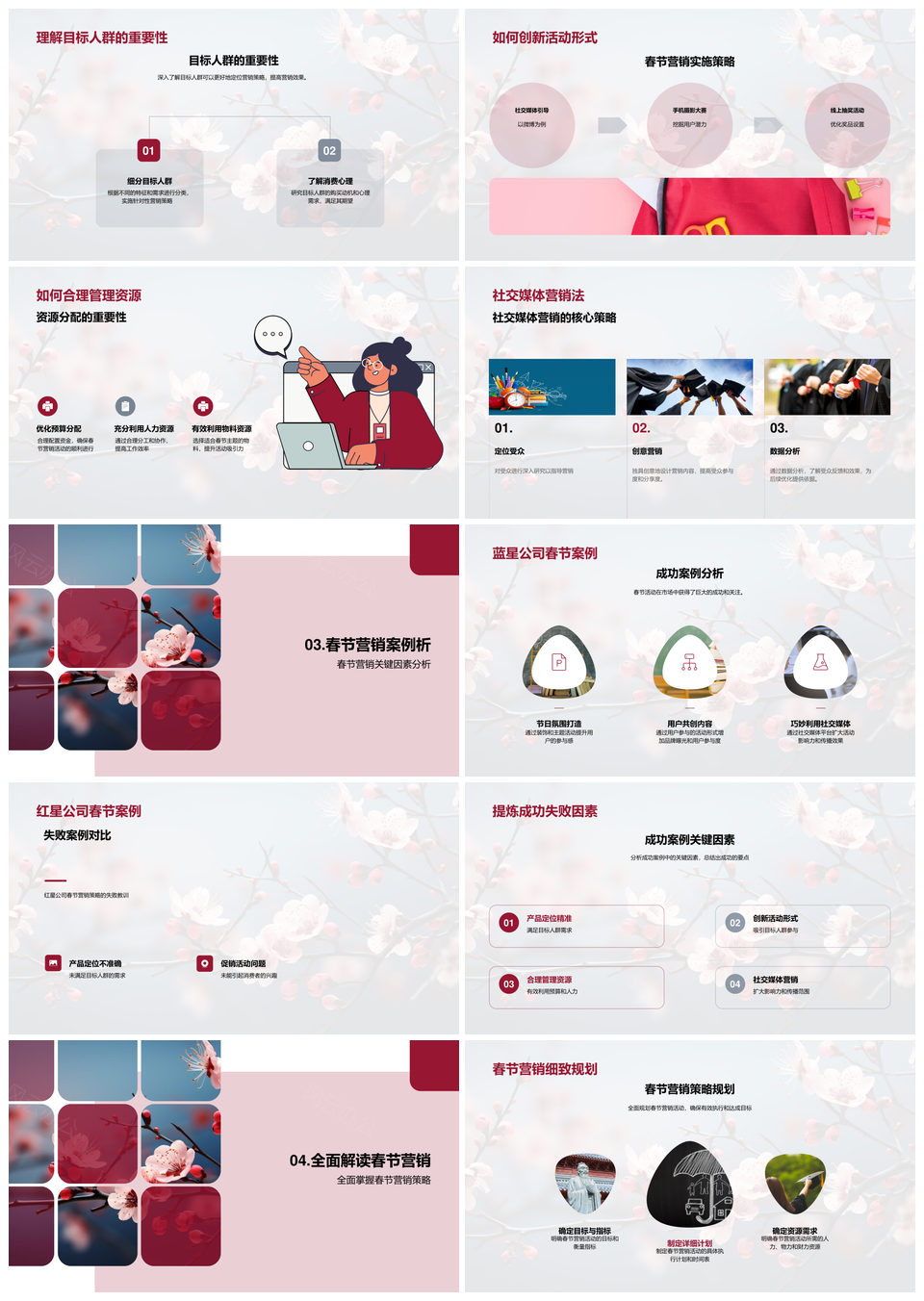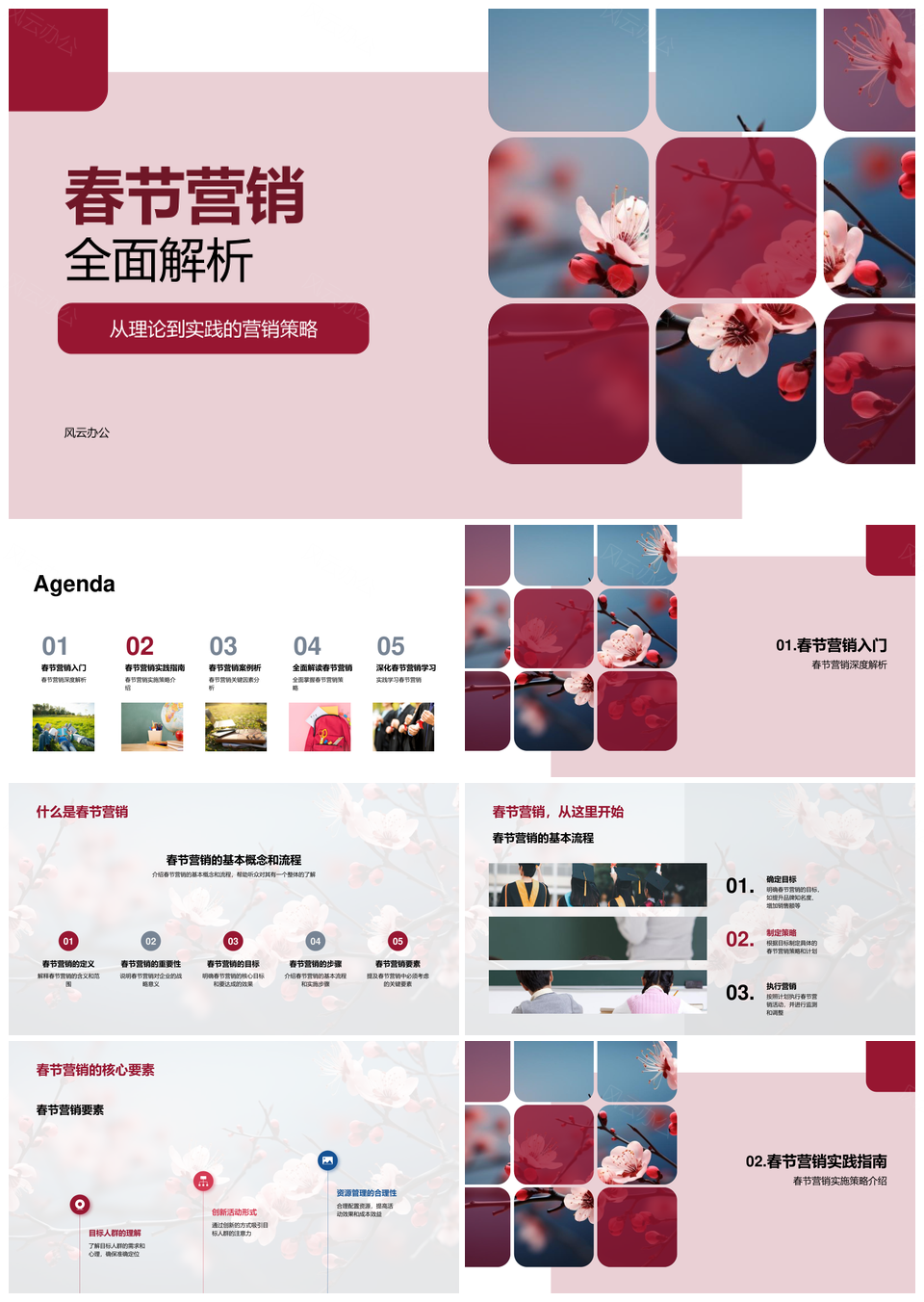 风云办公提供的蓝星春节樱花树创新营销策略全案PPT模板,下载格式为pptx,一共24页,作品中文字及图均可以修改和编辑,图片更改请在作品中右键图片并更换,文字修改请直接点击文字进行修改。