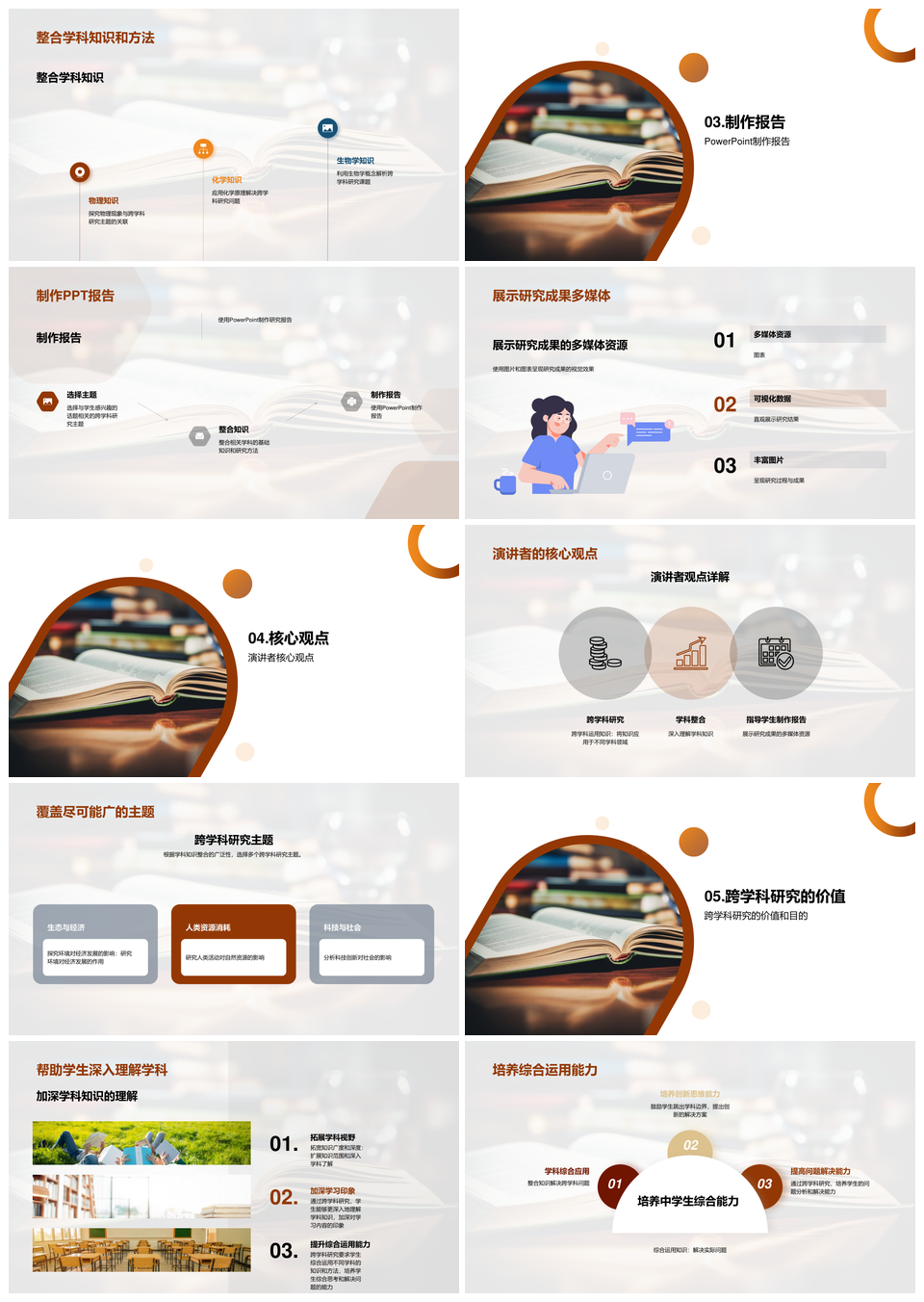风云办公提供的中学生跨学科研究应用探究PPT模板,下载格式为pptx,一共21页,作品中文字及图均可以修改和编辑,图片更改请在作品中右键图片并更换,文字修改请直接点击文字进行修改。