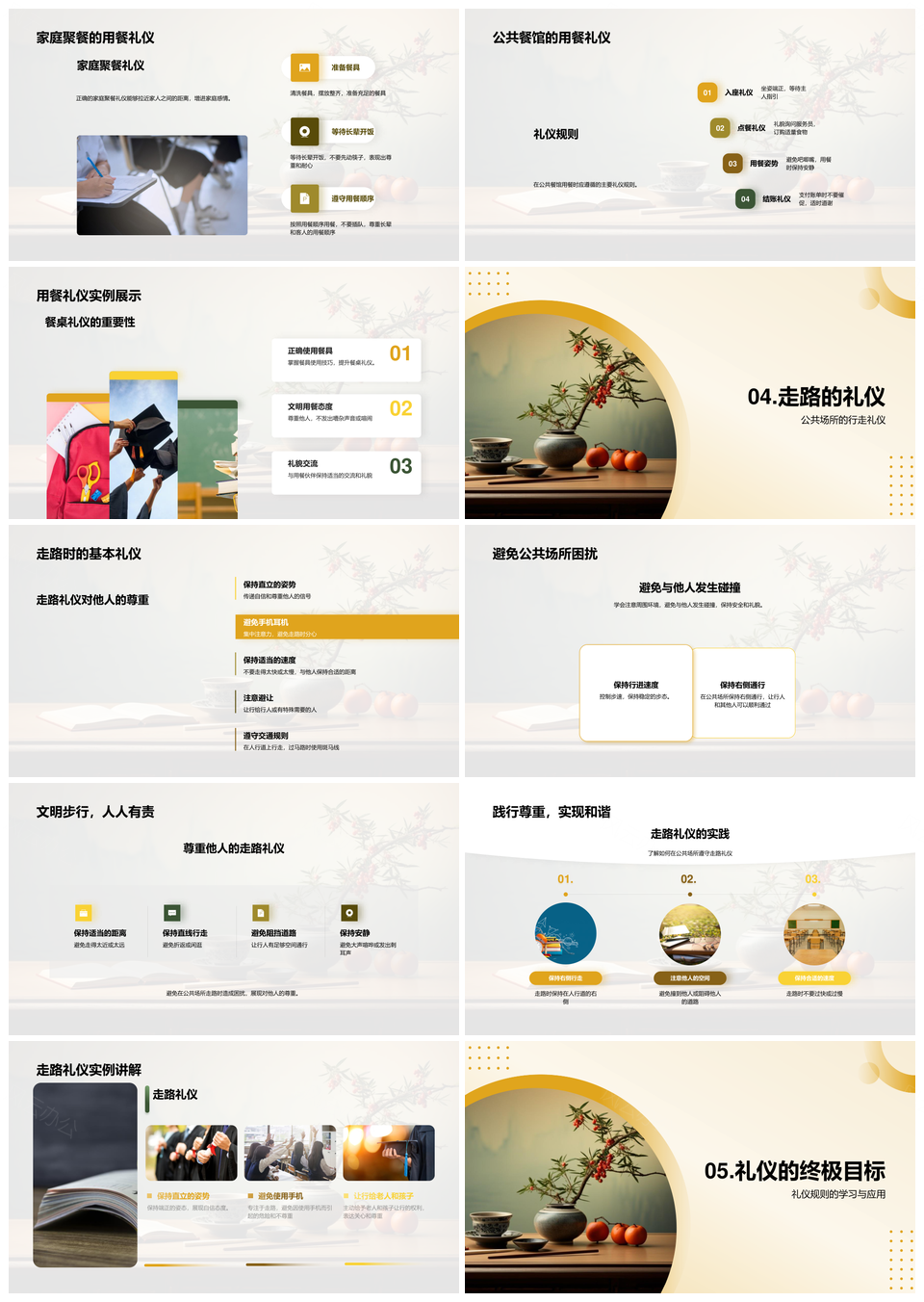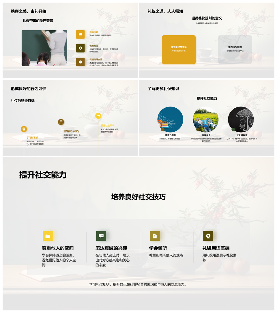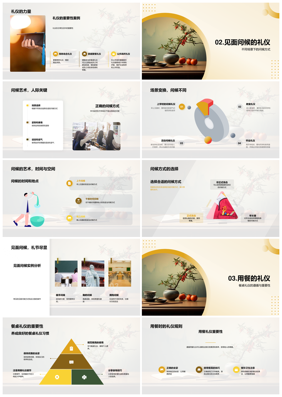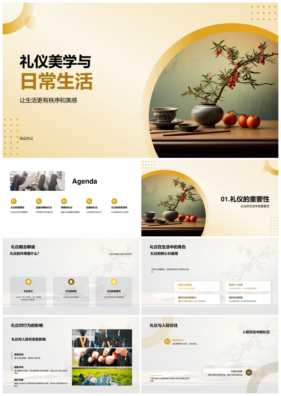 这是一张礼仪美学与生活秩序之美PPT模板,包含礼仪美学、生活秩序、之美等主题内容,也可用作礼仪美学生活秩序、美学生活秩序美、礼仪美学生活、美学生活秩序、礼仪生活秩序美、生活秩序美、礼仪美学、美学生活、生活秩序、礼仪生活、礼仪秩序、秩序美、生活美、美学秩序美、礼仪美等PPT场景使用。 风云办公提供的礼仪美学与生活秩序之美PPT模板,下载格式为pptx,一共33页,作品中文字及图均可以修改和编辑,图片更改请在作品中右键图片并更换,文字修改请直接点击文字进行修改。
