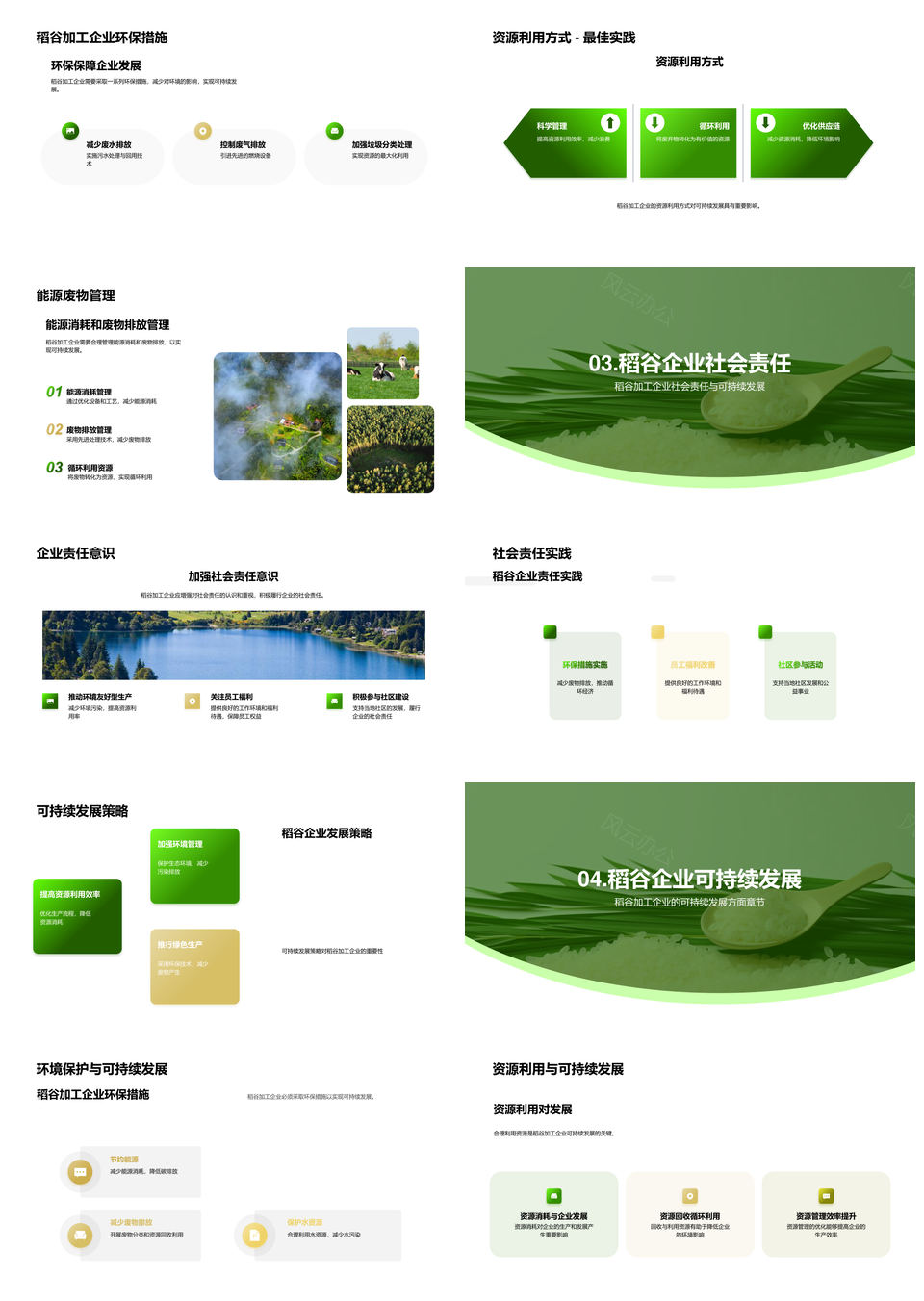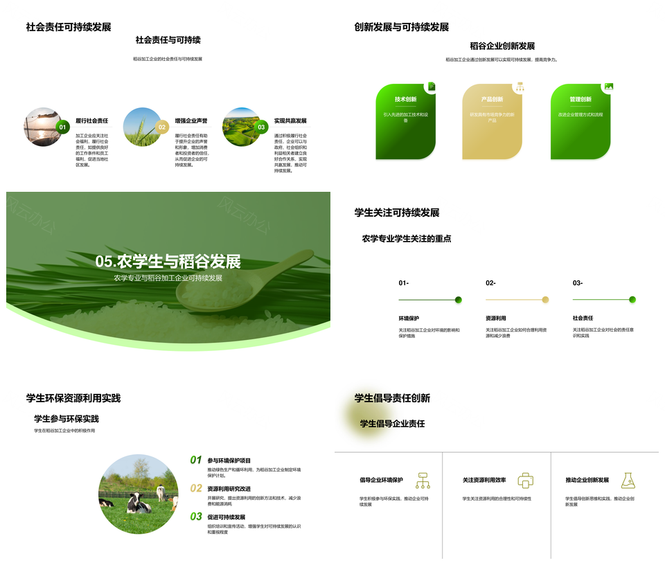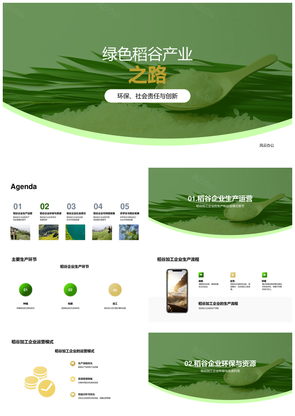 风云办公提供的稻企可持续生产与农学环保实践PPT模板,下载格式为pptx,一共24页,作品中文字及图均可以修改和编辑,图片更改请在作品中右键图片并更换,文字修改请直接点击文字进行修改。