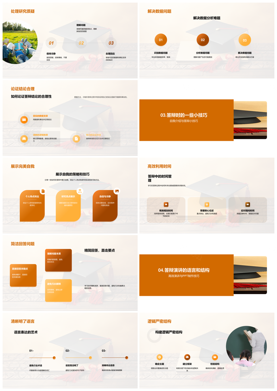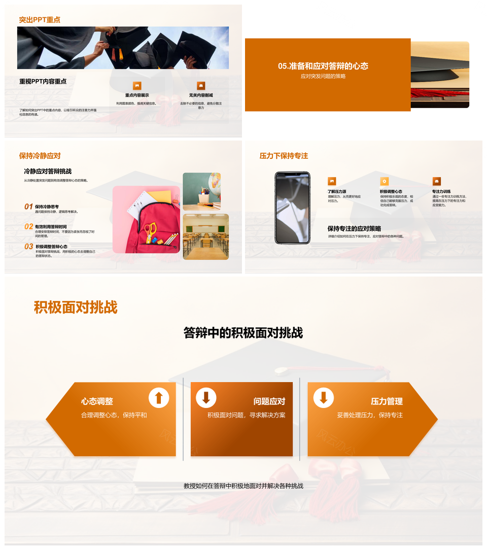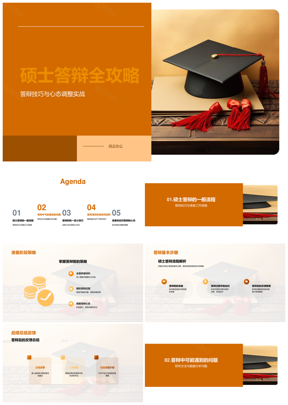 硕士答辩技巧流程准备心态数据方法毕业帽PPT模板推荐