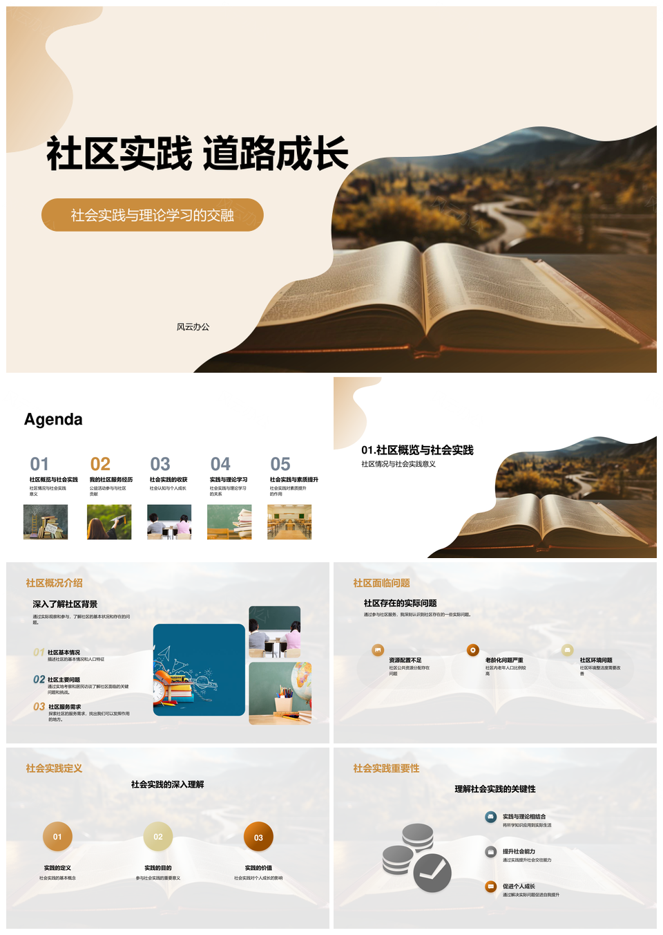 风云办公提供的社区实践理论学习助推公益成长之路PPT模板,下载格式为pptx,一共33页,作品中文字及图均可以修改和编辑,图片更改请在作品中右键图片并更换,文字修改请直接点击文字进行修改。
