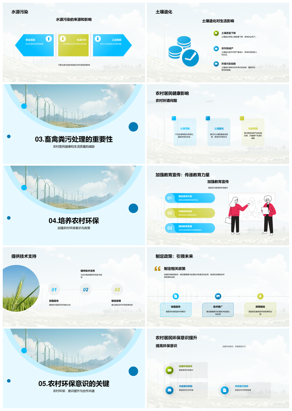 风云办公提供的农村教育环保粪污处理护水土健康PPT模板,下载格式为pptx,一共24页,作品中文字及图均可以修改和编辑,图片更改请在作品中右键图片并更换,文字修改请直接点击文字进行修改。