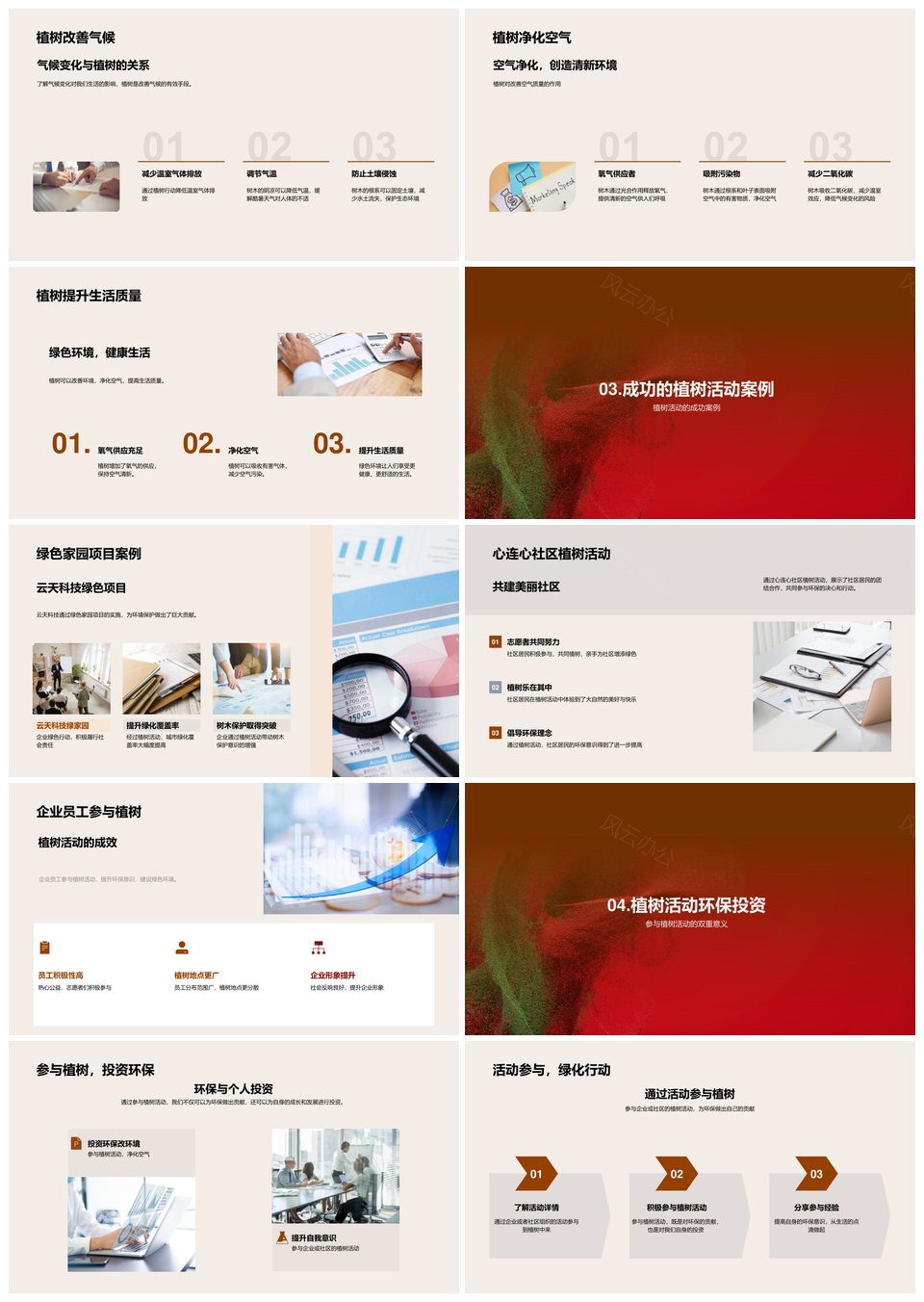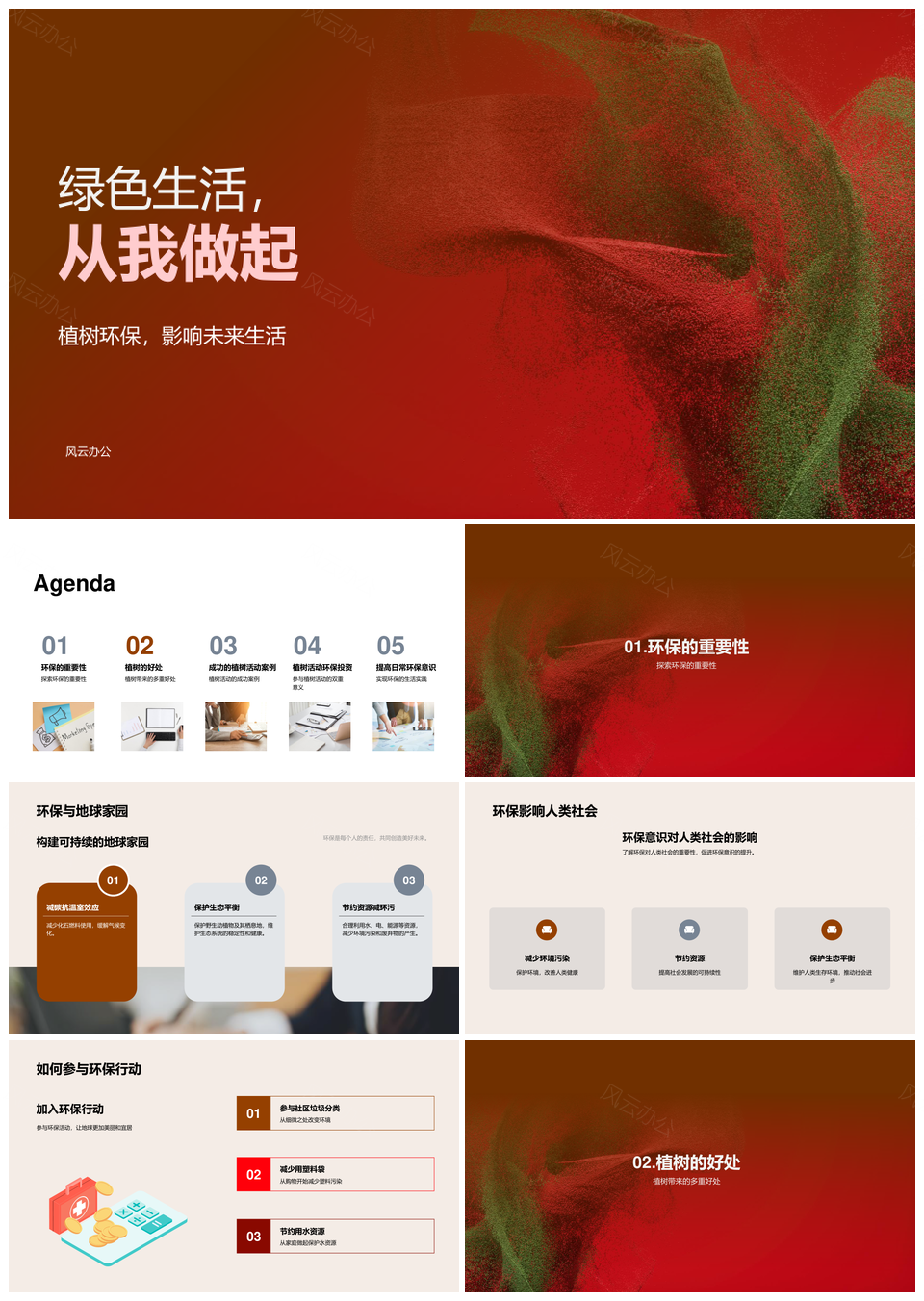 风云办公提供的绿色生活植树行动净化空气护气候PPT模板,下载格式为pptx,一共23页,作品中文字及图均可以修改和编辑,图片更改请在作品中右键图片并更换,文字修改请直接点击文字进行修改。