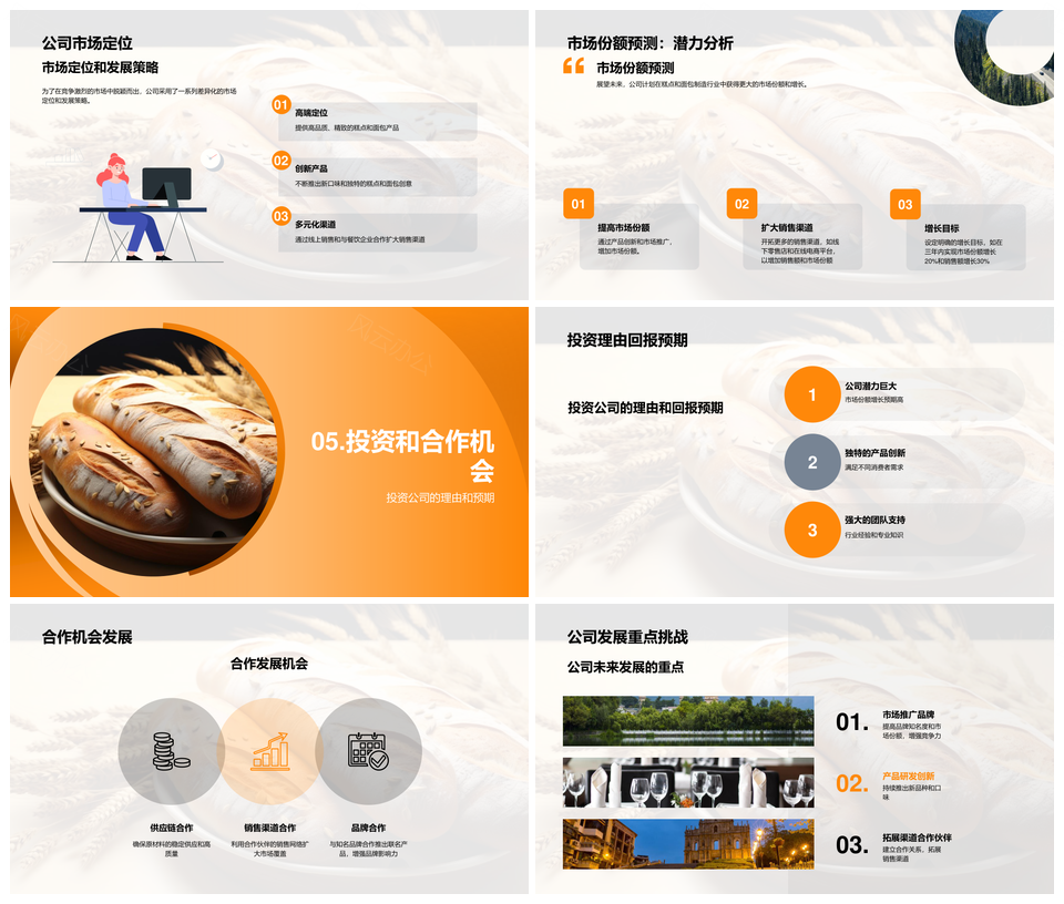 这是一张面包糕点公司热销创新商业计划引投资者关注PPT模板,包含面包糕点、公司、热销、创新、商业计划、投资者、关注等主题内容,也可用作面包糕点公司热销创新商业计划、面包糕点公司热销创新、面包糕点热销创新商业计划、糕点公司热销创新商业计划、热销创新商业计划投资者、创新商业计划引投资者关注、面包糕点公司创新商业计划、公司热销创新商业计划、商业计划引投资者关注、热销创新商业计划、面包糕点公司热销、创新商业计划投资者、商业计划投资者关注、公司热销创新、热销创新商业等PPT场景使用。 风云办公提供的面包糕点公司热销创新商业计划引投资者关注PPT模板,下载格式为pptx,一共24页,作品中文字及图均可以修改和编辑,图片更改请在作品中右键图片并更换,文字修改请直接点击文字进行修改。