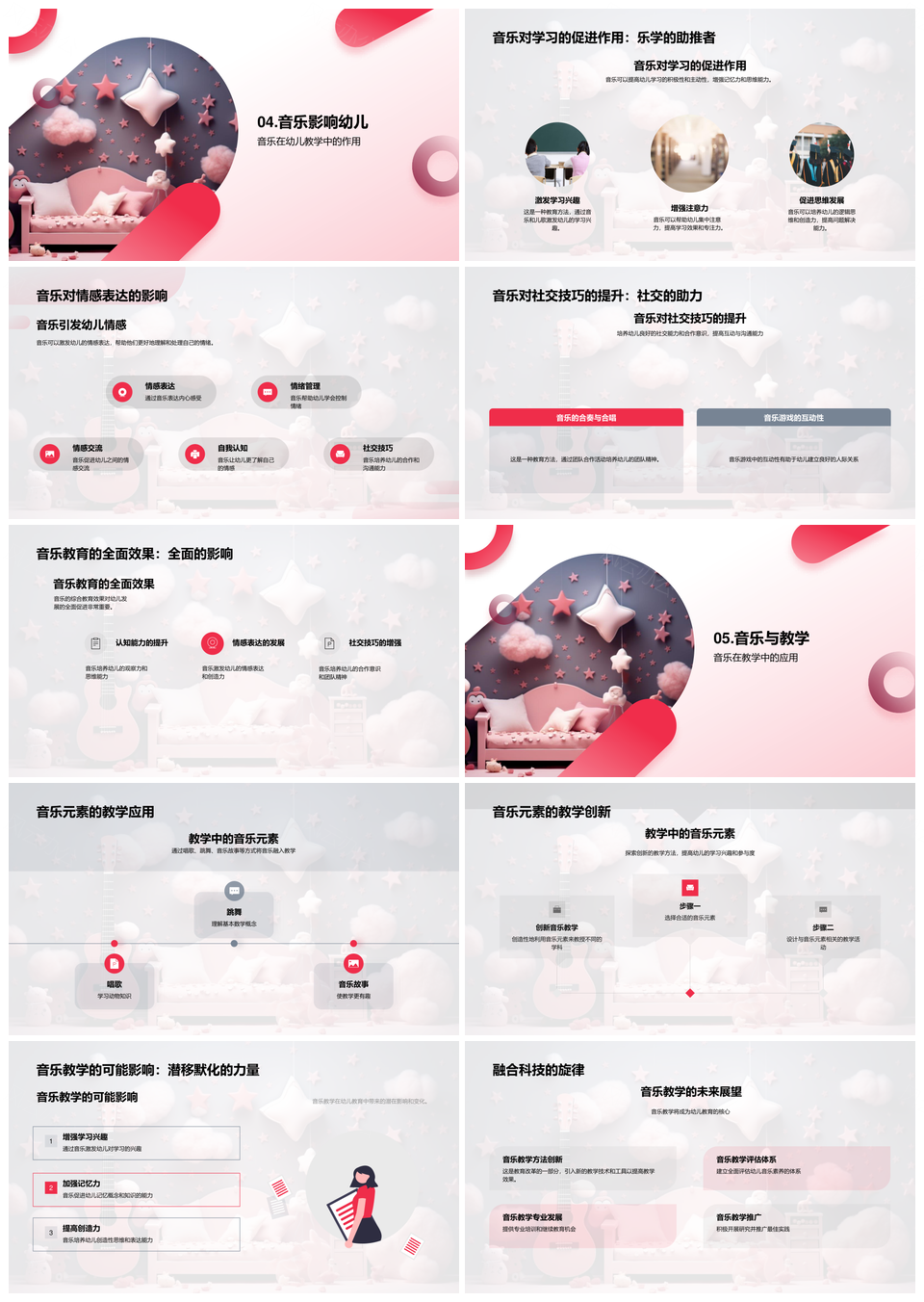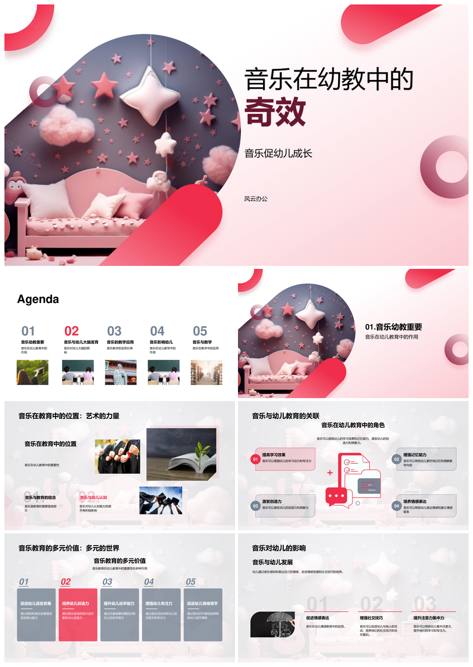 风云办公提供的幼教音乐促进脑发育记忆社交情感表达PPT模板,下载格式为pptx,一共28页,作品中文字及图均可以修改和编辑,图片更改请在作品中右键图片并更换,文字修改请直接点击文字进行修改。
