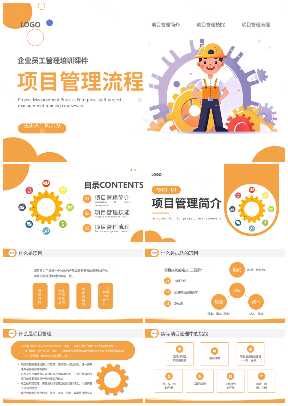 风云办公提供的橙色插画工程项目管理培训课件,下载格式为pptx,一共39页,作品中文字及图均可以修改和编辑,图片更改请在作品中右键图片并更换,文字修改请直接点击文字进行修改。