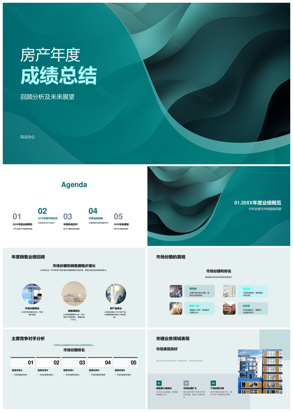 2025房产年度市场趋势业绩份额竞争业务新兴总结PPT模板推荐