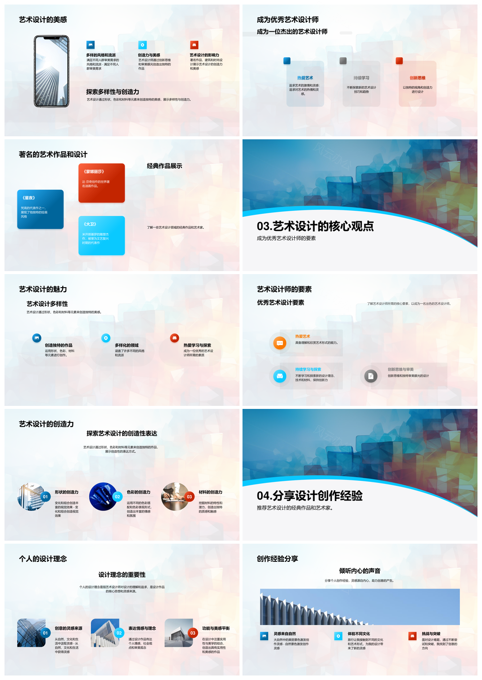 风云办公提供的艺术设计形色材创美之魅PPT模板,下载格式为pptx,一共23页,作品中文字及图均可以修改和编辑,图片更改请在作品中右键图片并更换,文字修改请直接点击文字进行修改。