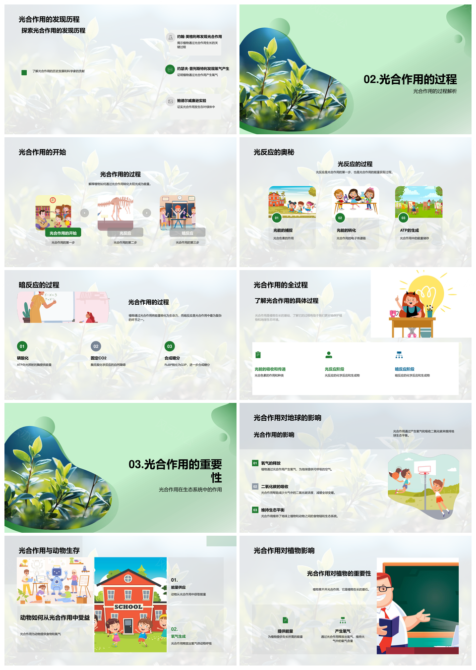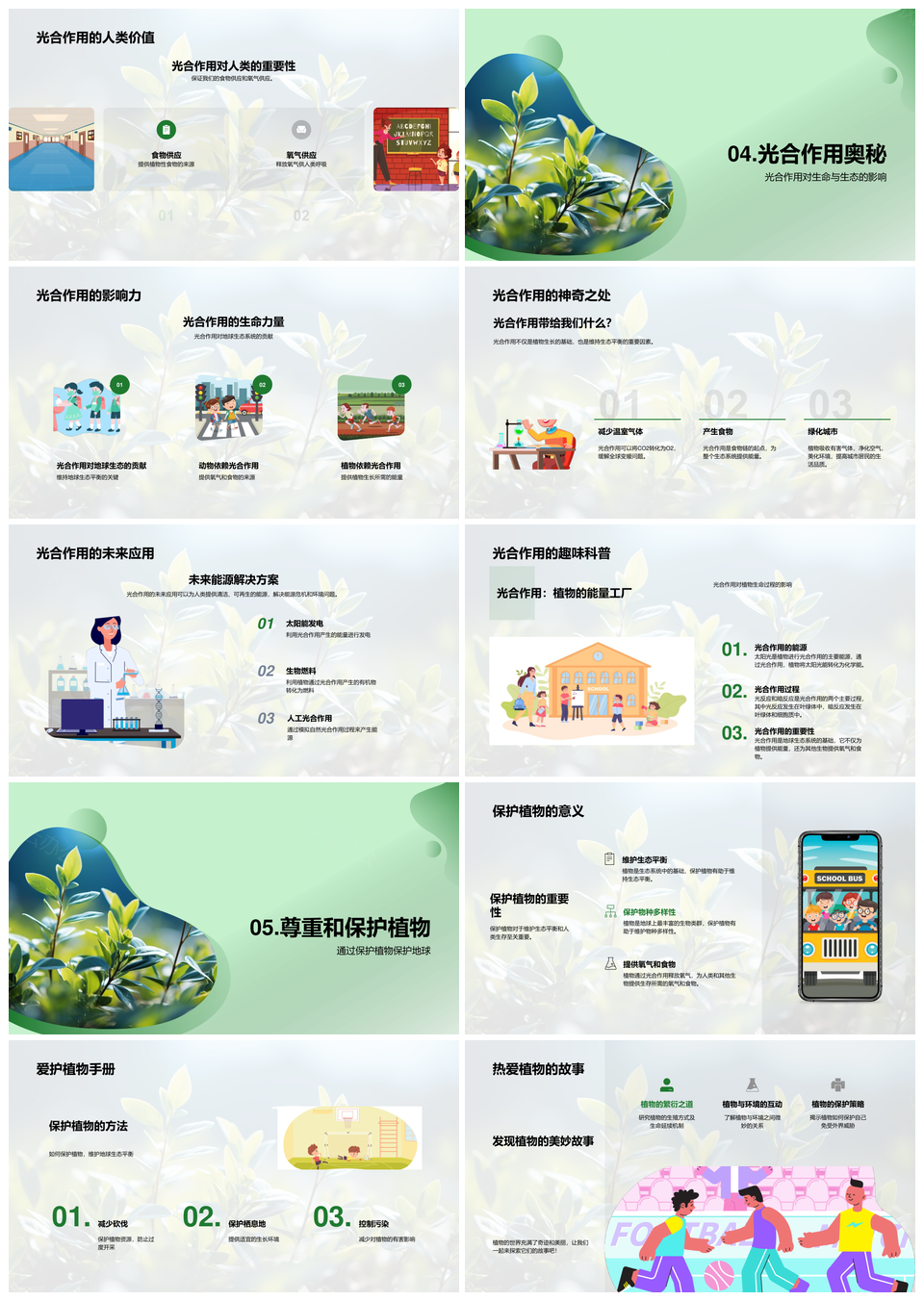 风云办公提供的光合作用驱动植物生长守护地球生态PPT模板,下载格式为pptx,一共30页,作品中文字及图均可以修改和编辑,图片更改请在作品中右键图片并更换,文字修改请直接点击文字进行修改。