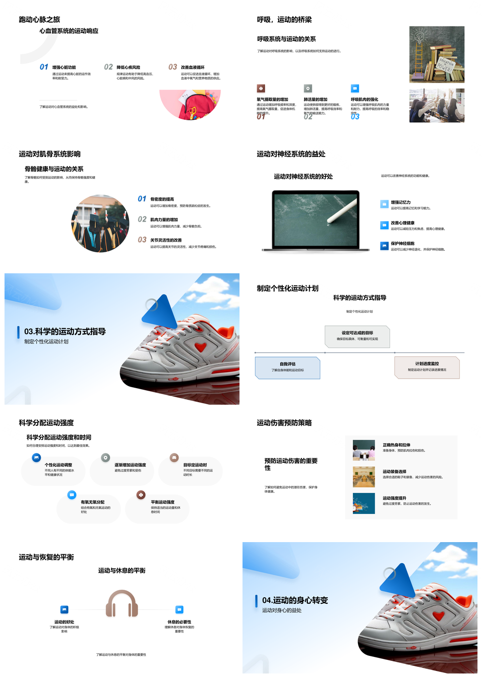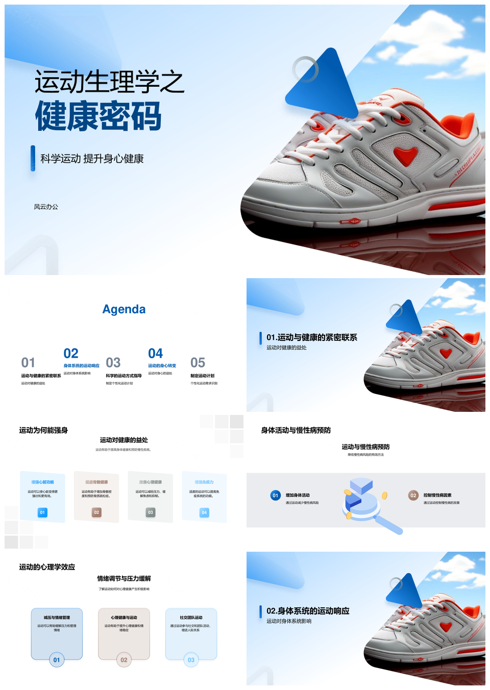 风云办公提供的运动生理学科学运动解锁健康密码PPT模板,下载格式为pptx,一共27页,作品中文字及图均可以修改和编辑,图片更改请在作品中右键图片并更换,文字修改请直接点击文字进行修改。