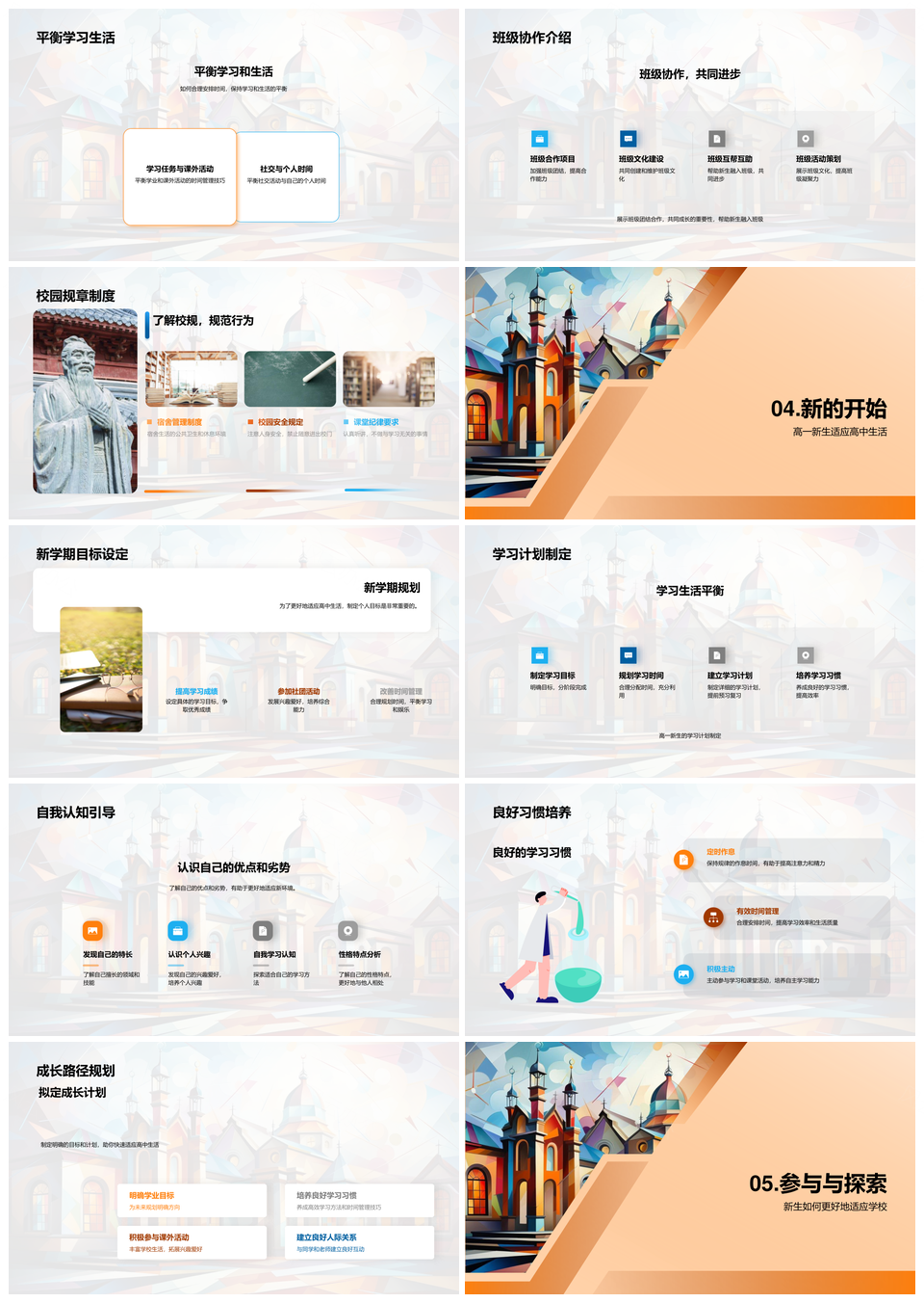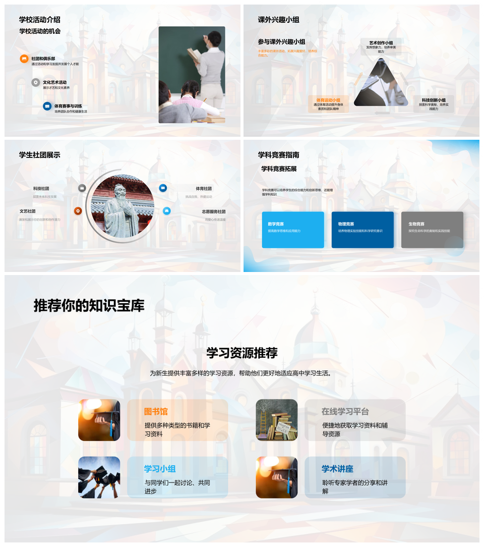 高一新生校园历史文化教学课程学习指导PPT模板推荐