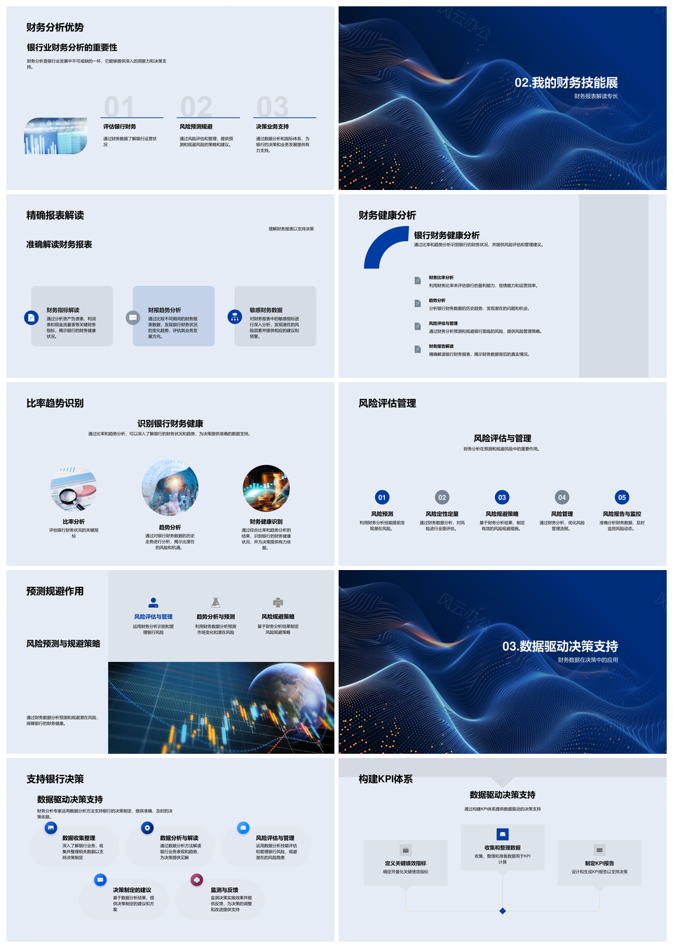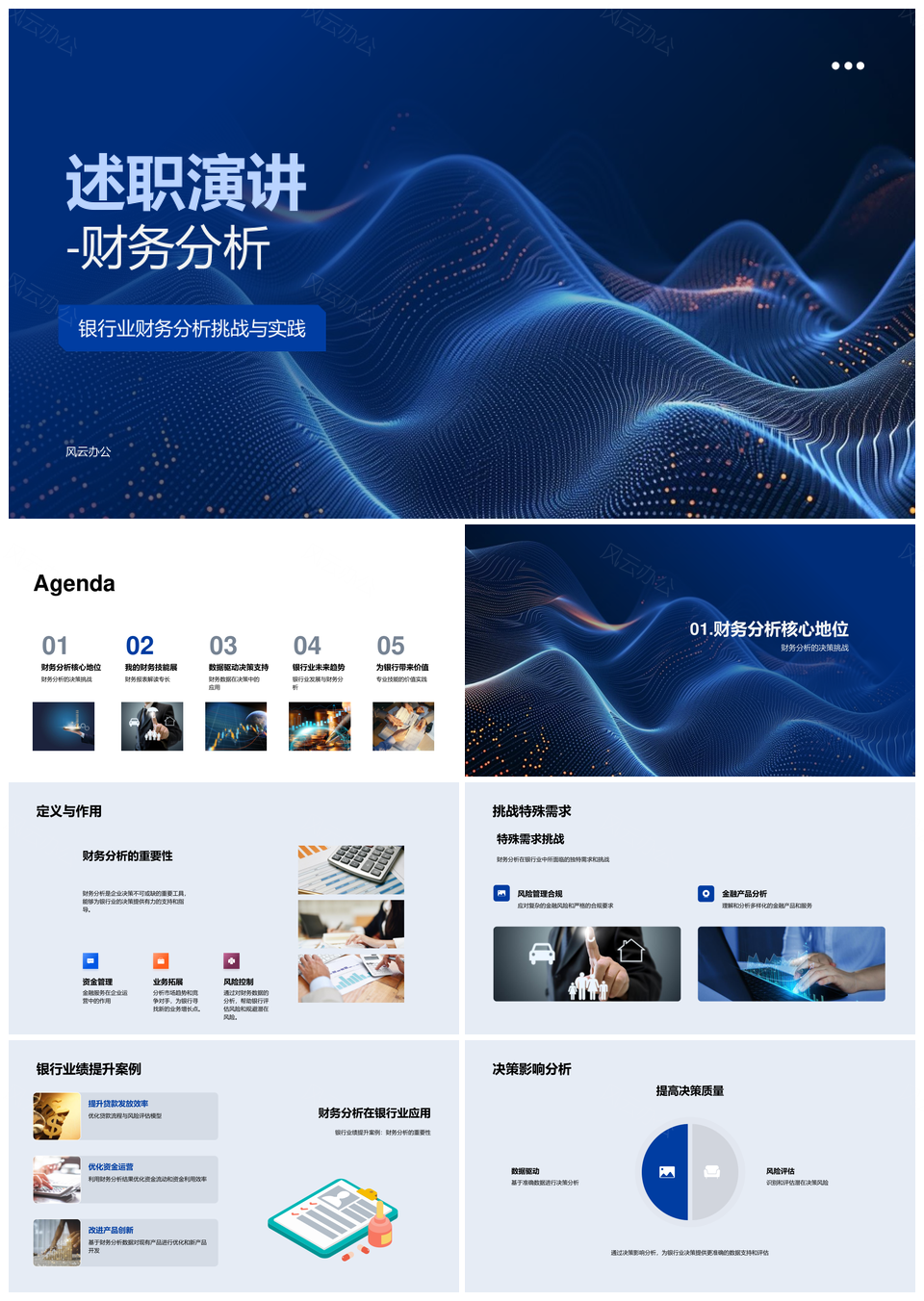 这是一张银行财务述职决策分析风险评估报表演讲PPT模板,包含银行、财务、述职、决策、分析、风险、评估、报告、演讲等主题内容,也可用作银行财务决策分析、财务决策分析风险、决策分析风险评估、分析风险评估报表、风险评估报表演讲、银行财务风险评估、财务述职决策分析、决策分析报表演讲、银行财务分析风险、银行分析风险评估、财务分析报表演讲、述职决策分析风险、述职风险评估报表、银行财务述职决策、风险评估报表分析等PPT场景使用。 风云办公提供的银行财务述职决策分析风险评估报表演讲PPT模板,下载格式为pptx,一共33页,作品中文字及图均可以修改和编辑,图片更改请在作品中右键图片并更换,文字修改请直接点击文字进行修改。