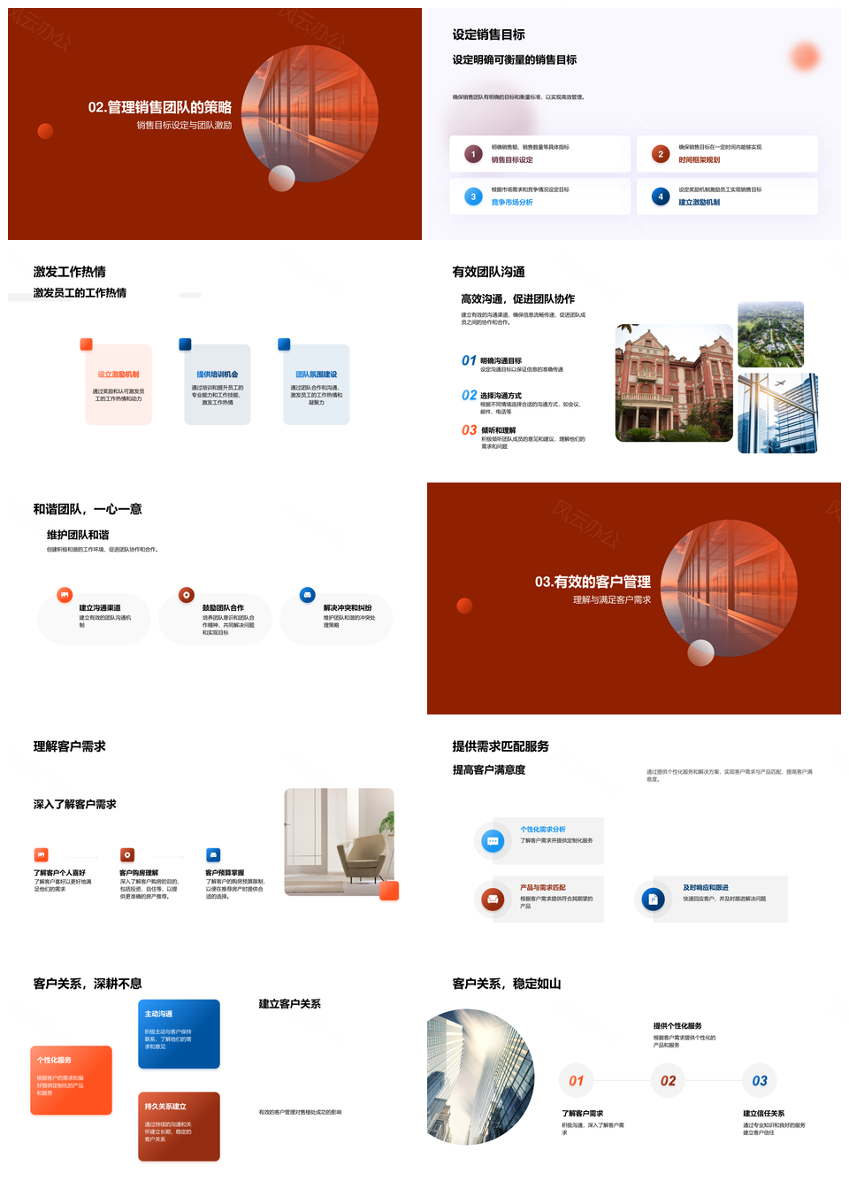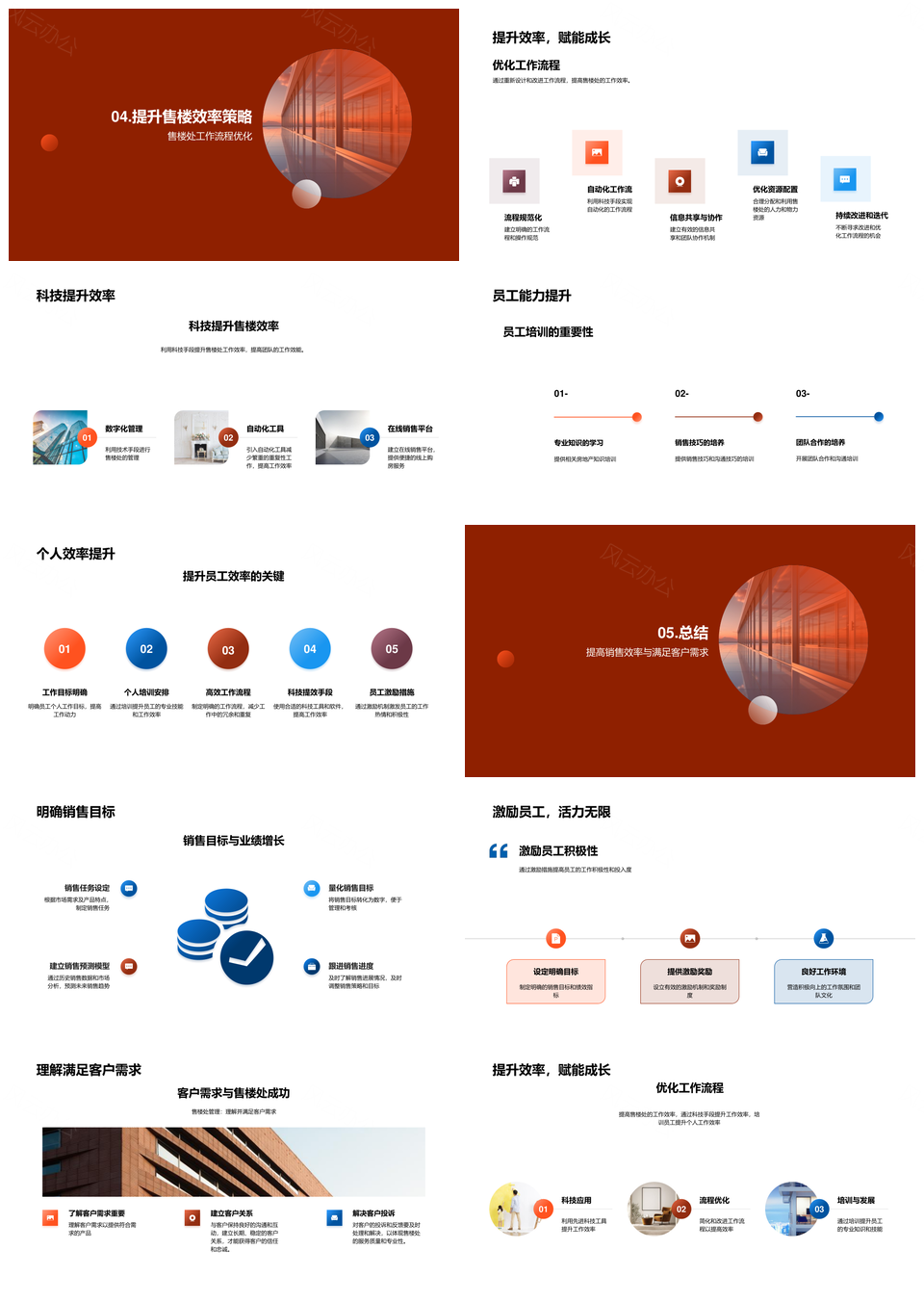 这是一张售楼处运营管理优化团队激励促销售服务提升PPT模板,包含售楼处、运营管理、优化、团队、激励、促销售、服务、提升等主题内容,也可用作售楼处运营管理优化团队、运营管理优化团队激励、优化团队激励促销售、团队激励促销售服务、促销售服务提升优化、售楼处运营管理服务、运营管理优化服务、售楼处优化团队激励、团队激励促销售、管理优化促销售、优化团队服务提升、售楼处运营优化、运营管理团队、激励服务提升、促销售服务提升等PPT场景使用。 风云办公提供的售楼处运营管理优化团队激励促销售服务提升PPT模板,下载格式为pptx,一共29页,作品中文字及图均可以修改和编辑,图片更改请在作品中右键图片并更换,文字修改请直接点击文字进行修改。
