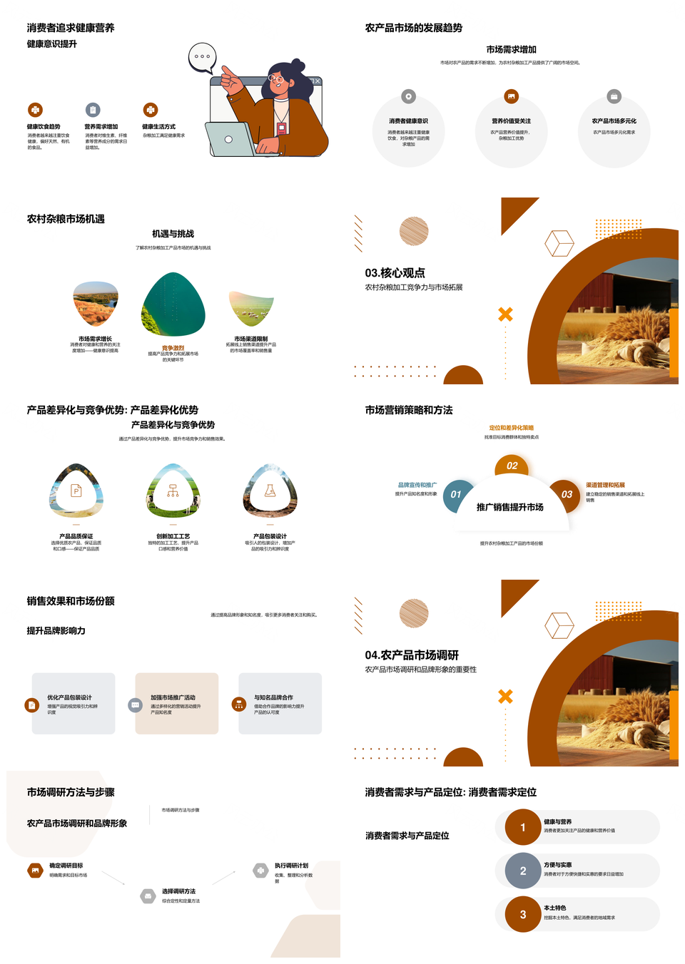 风云办公提供的农村杂粮加工产品健康营销新策略PPT模板,下载格式为pptx,一共23页,作品中文字及图均可以修改和编辑,图片更改请在作品中右键图片并更换,文字修改请直接点击文字进行修改。