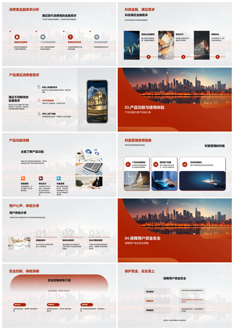 风云办公提供的金融科技赋能财富管理安全新体验PPT模板,下载格式为pptx,一共23页,作品中文字及图均可以修改和编辑,图片更改请在作品中右键图片并更换,文字修改请直接点击文字进行修改。