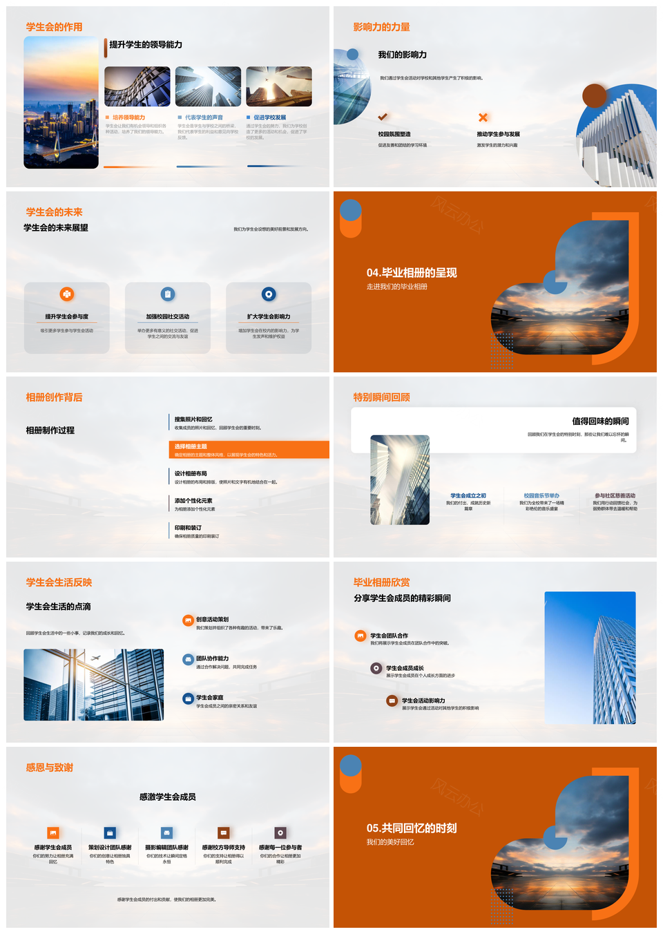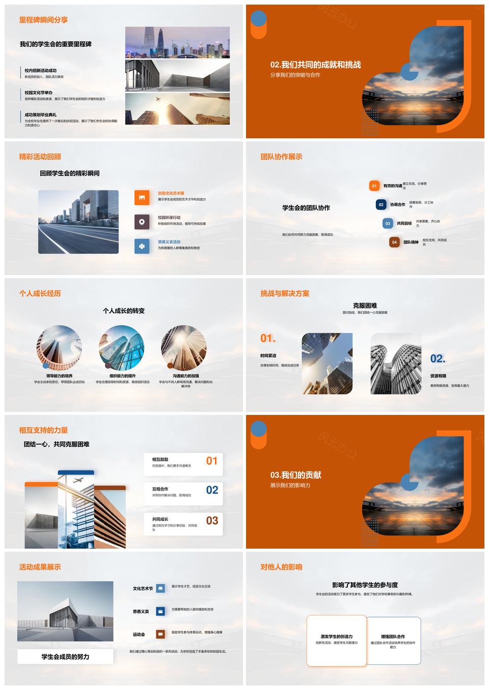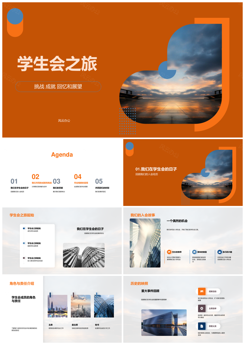 风云办公提供的学生会毕业挑战成就忆往展新共筑PPT模板,下载格式为pptx,一共33页,作品中文字及图均可以修改和编辑,图片更改请在作品中右键图片并更换,文字修改请直接点击文字进行修改。