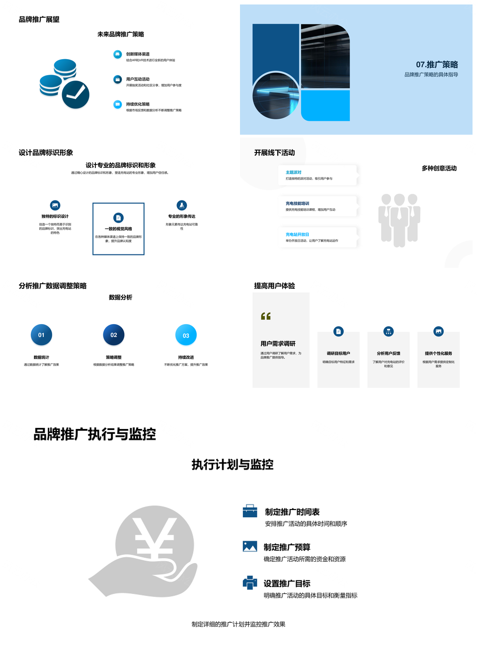 这是一张充电站品牌推广计划多渠道拓用户争市场PPT模板,包含充电站、品牌、推广计划、多渠道、拓用户、争市场等主题内容,也可用作充电站品牌推广计划、品牌推广计划多渠道、充电站品牌推广、品牌推广计划、推广计划多渠道、计划多渠道用户、多渠道拓用户争市场、充电站推广计划、品牌计划多渠道、推广多渠道用户、计划用户市场、多渠道用户争市场、品牌用户市场、品牌推广、推广计划、计划多渠道等PPT场景使用。 风云办公提供的充电站品牌推广计划多渠道拓用户争市场PPT模板,下载格式为pptx,一共45页,作品中文字及图均可以修改和编辑,图片更改请在作品中右键图片并更换,文字修改请直接点击文字进行修改。