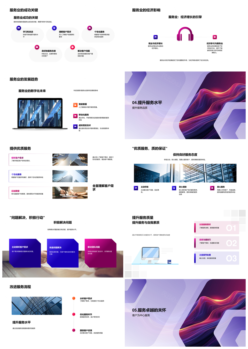 服务行业发展趋势质量政策经济科技图表报告PPT模板