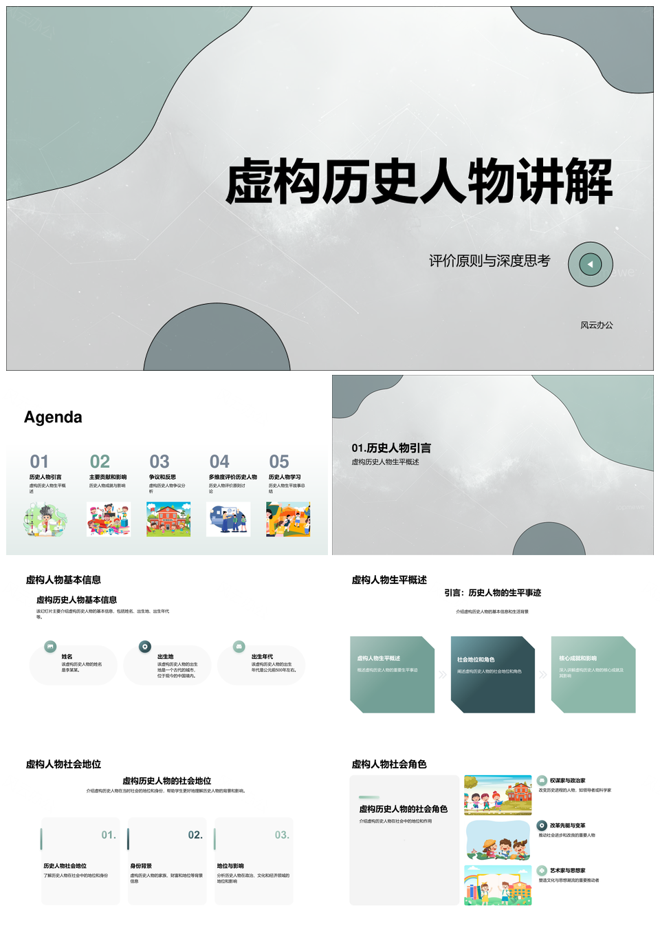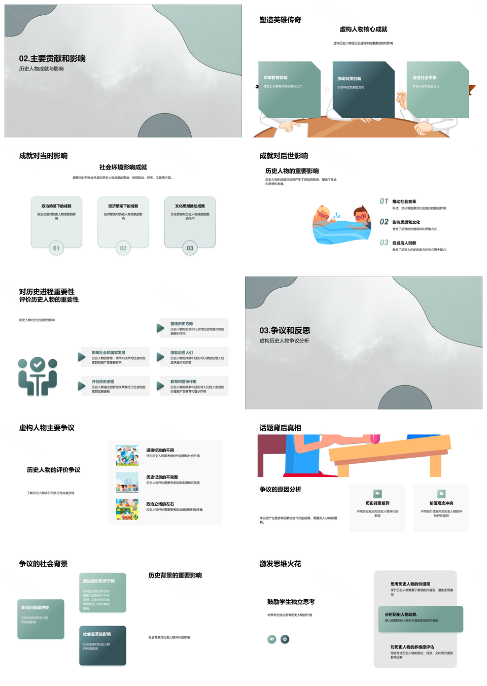 风云办公提供的虚构历史人物社会成就影响争议思辨PPT模板,下载格式为pptx,一共28页,作品中文字及图均可以修改和编辑,图片更改请在作品中右键图片并更换,文字修改请直接点击文字进行修改。