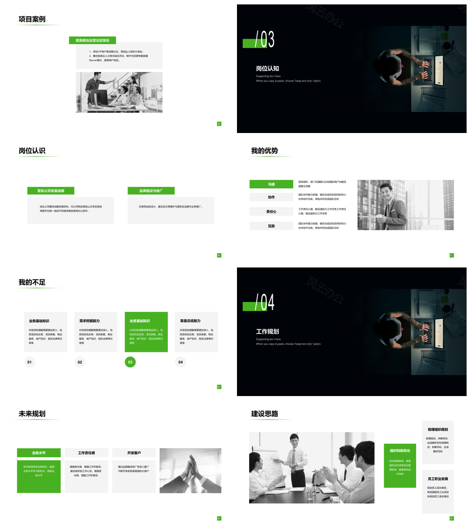 这是一张深色商务简约运营竞聘简历几何绿工作规划PPT模板,包含深色、商务、简约、运营、竞聘、简历、几何、绿、工作、规划等主题内容,也可用作深色商务简约运营竞聘、深色商务竞聘简历、商务简约运营竞聘、简约运营竞聘简历、运营竞聘简历工作规划、深色商务简约工作规划、商务简约竞聘简历、简约竞聘简历工作规划、竞聘简历工作规划、深色商务简约、商务简约竞聘、简约运营竞聘、几何绿工作规划、简历工作规划、简约几何绿工作规划等PPT场景使用。 风云办公提供的深色商务简约运营竞聘简历几何绿工作规划PPT模板,下载格式为pptx,一共16页,作品中文字及图均可以修改和编辑,图片更改请在作品中右键图片并更换,文字修改请直接点击文字进行修改。