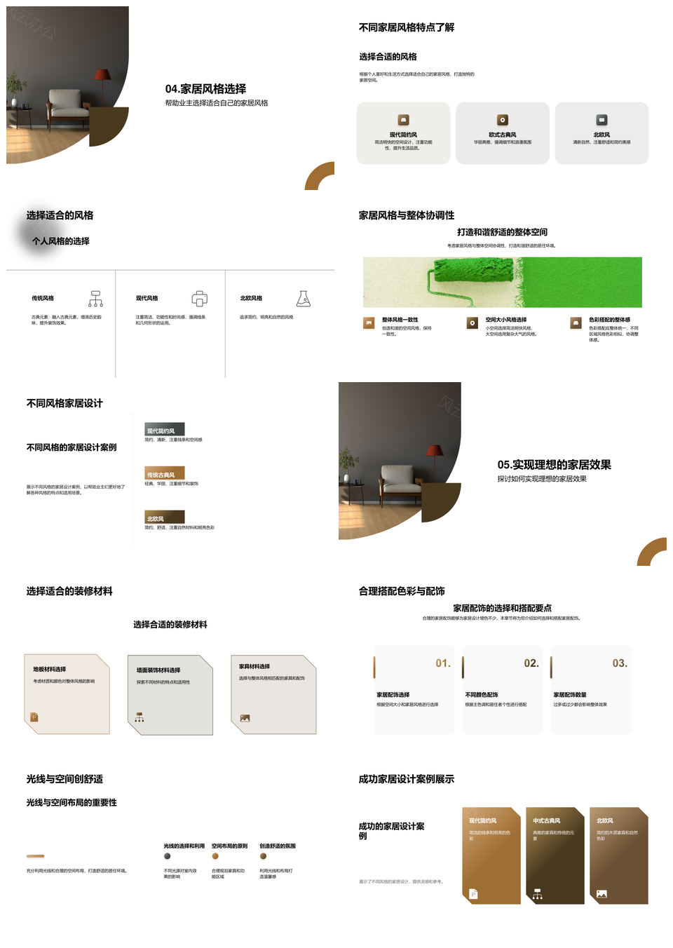 这是一张家居设计装修空间功能色彩光线指南PPT模板,包含家居设计、装修、空间、功能、色彩、光线、指南等主题内容,也可用作家居设计装修空间、设计装修空间功能、装修空间功能色彩、空间功能色彩光线、功能色彩光线指南、家居设计装修、设计装修空间、装修空间功能、空间功能色彩、功能色彩光线、色彩光线指南、家居设计、设计装修、装修空间、空间功能等PPT场景使用。