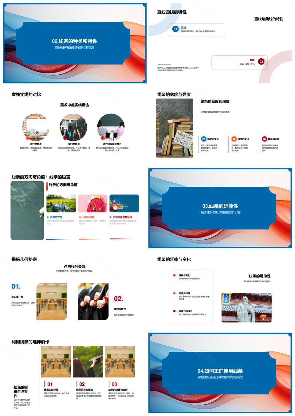 风云办公提供的线条美学艺术教育起源发展线型解析PPT模板,下载格式为pptx,一共26页,作品中文字及图均可以修改和编辑,图片更改请在作品中右键图片并更换,文字修改请直接点击文字进行修改。