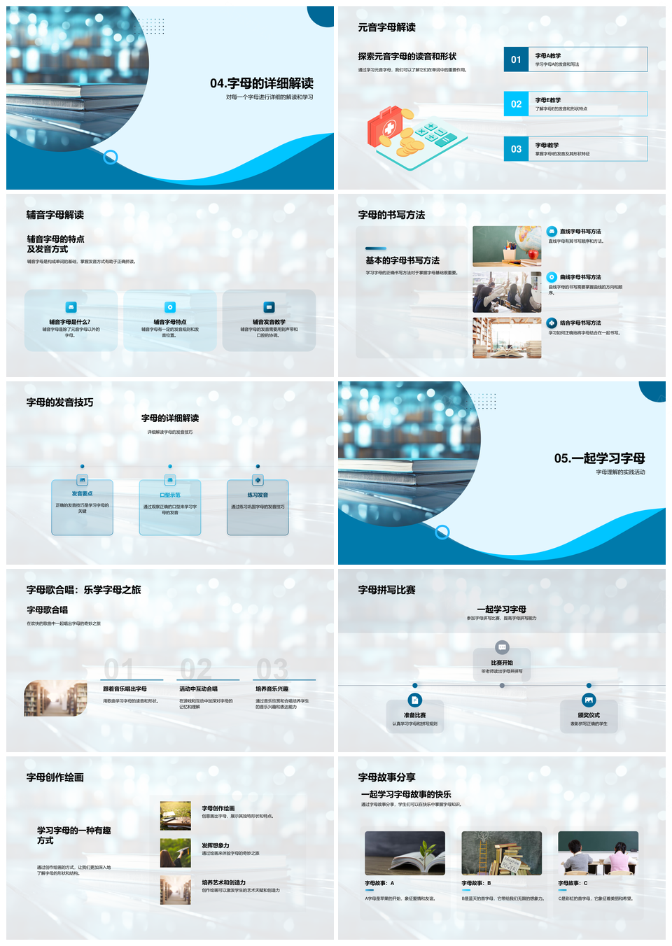 风云办公提供的字母世界学语言读写唱教育启航PPT模板,下载格式为pptx,一共28页,作品中文字及图均可以修改和编辑,图片更改请在作品中右键图片并更换,文字修改请直接点击文字进行修改。