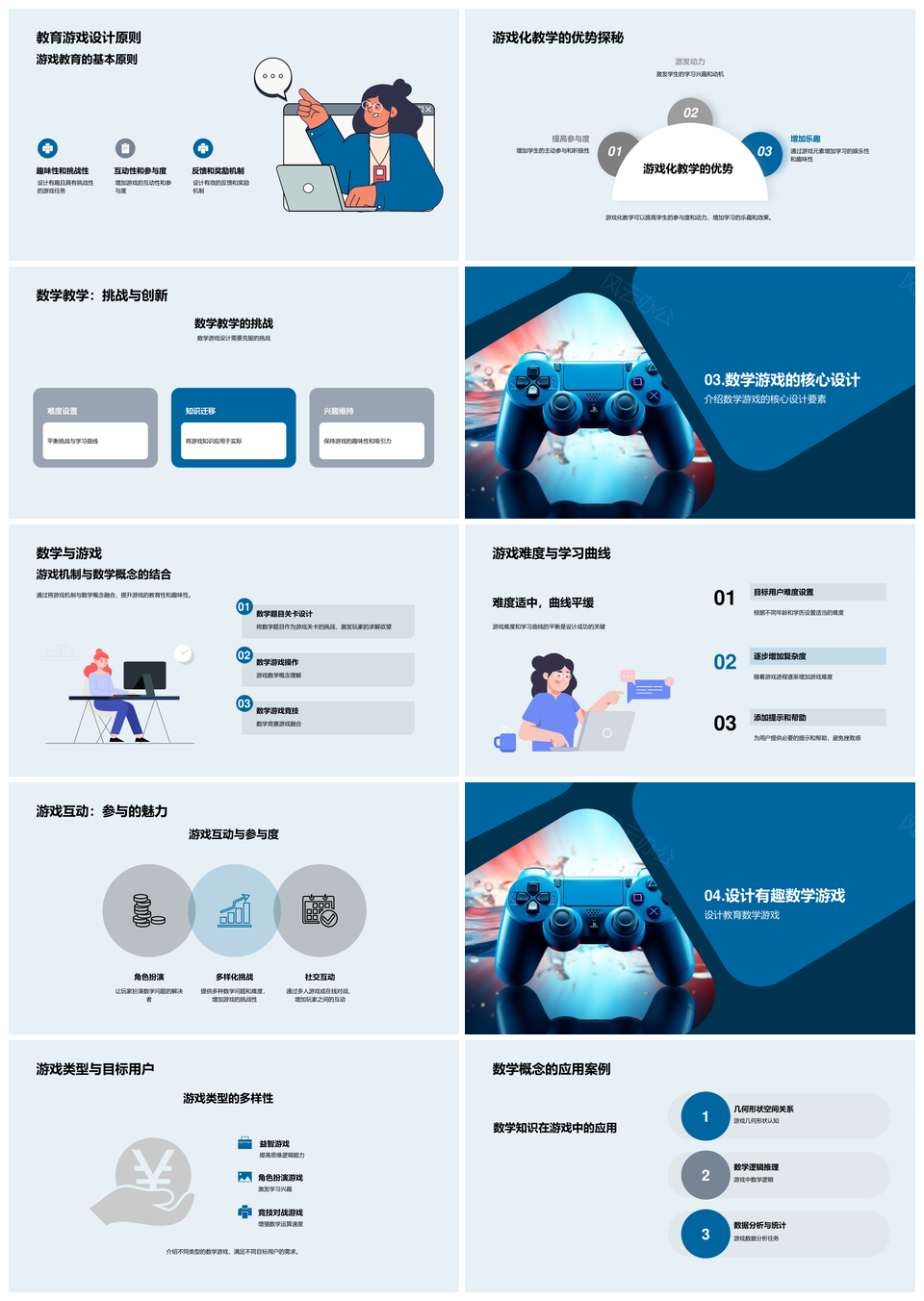 数学游戏设计评估教育市场竞争游戏化教学PPT模板推荐