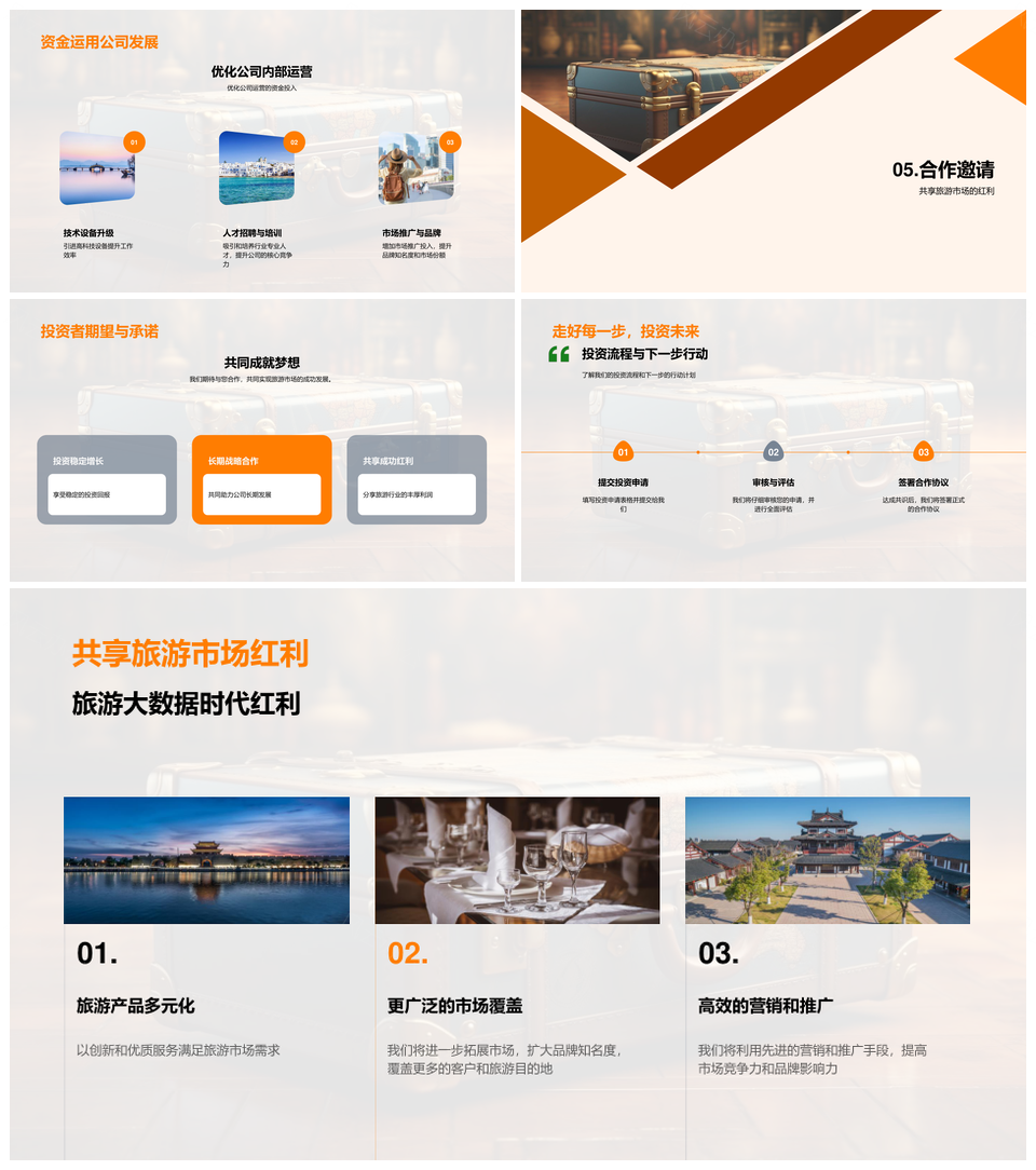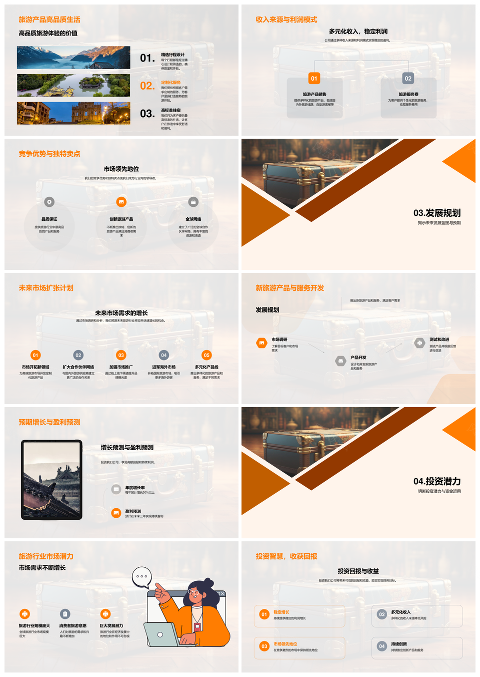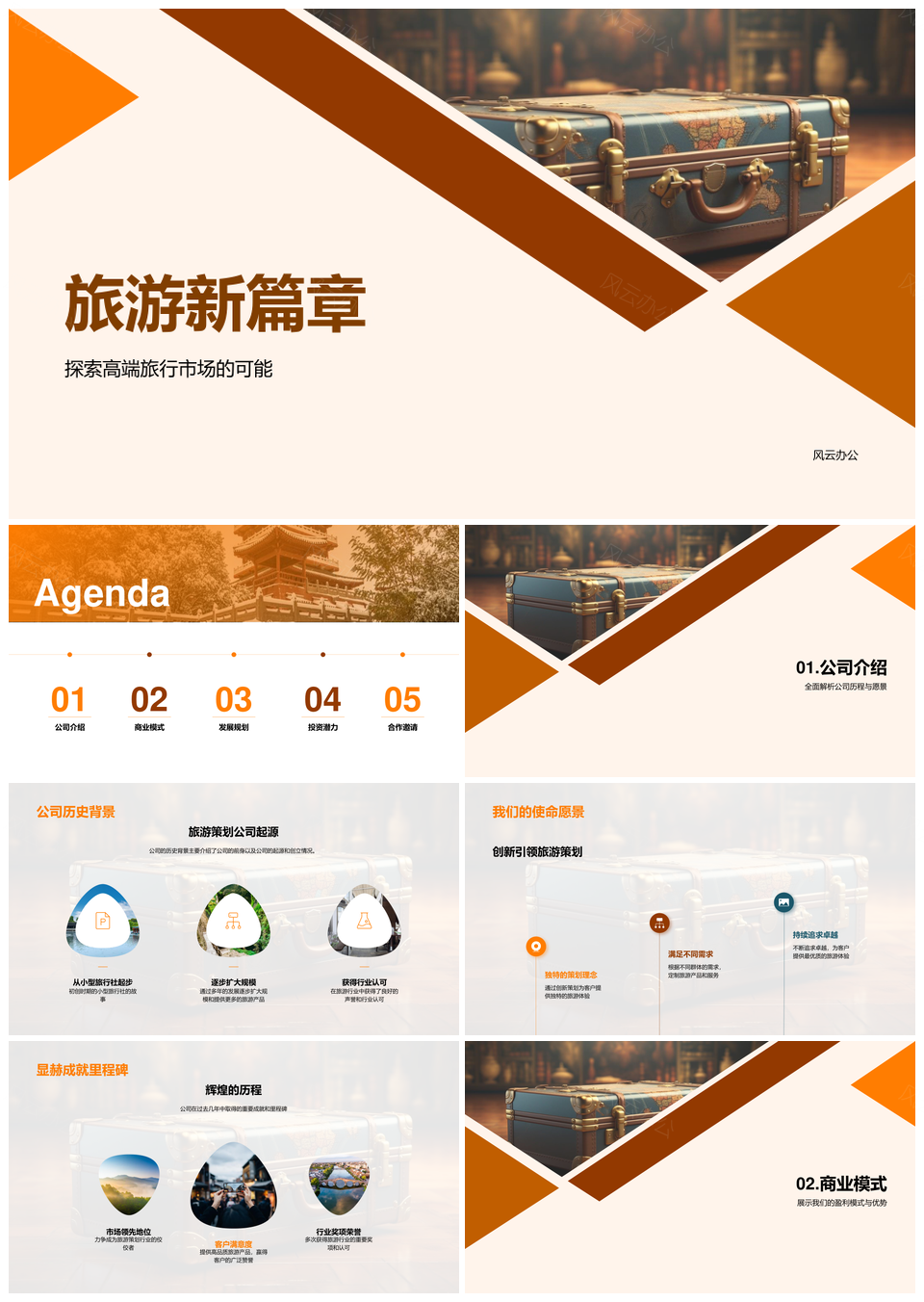 这是一张高端旅行市场复古手提箱启航发展新篇章PPT模板,包含高端旅行市场、复古手提箱、启航、发展、新篇章等主题内容,也可用作高端旅行市场复古手提箱、复古手提箱启航发展新篇章、高端旅行启航发展新篇章、旅行市场复古手提箱启航、高端复古手提箱启航发展、手提箱启航发展新篇章、高端市场启航发展新篇章、旅行手提箱启航发展、复古手提箱发展新篇章、高端旅行发展新篇章、市场复古手提箱启航、高端复古手提箱新篇章、旅行市场启航发展、市场启航发展新篇章、复古启航发展新篇章等PPT场景使用。 风云办公提供的高端旅行市场复古手提箱启航发展新篇章PPT模板,下载格式为pptx,一共23页,作品中文字及图均可以修改和编辑,图片更改请在作品中右键图片并更换,文字修改请直接点击文字进行修改。