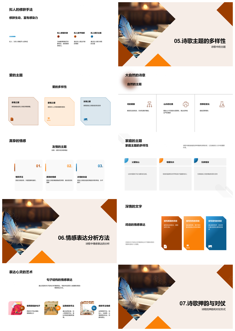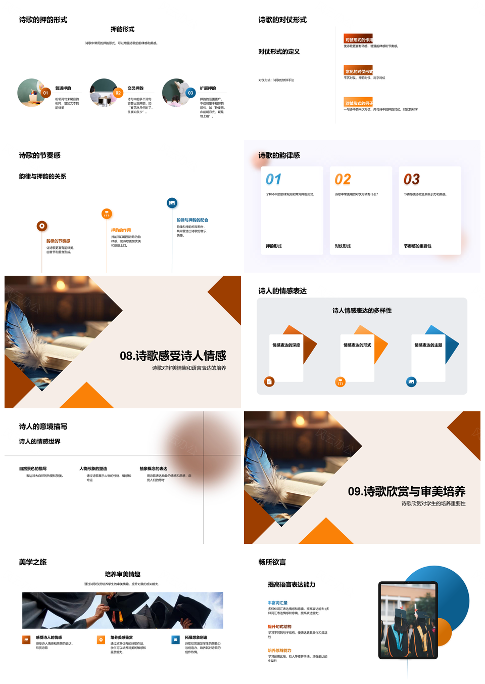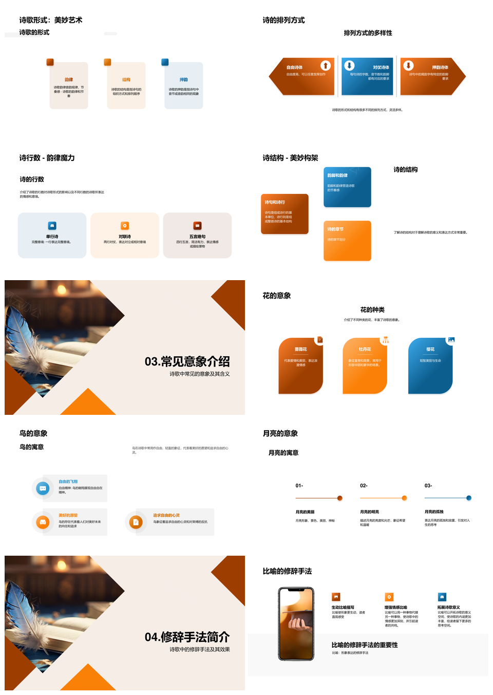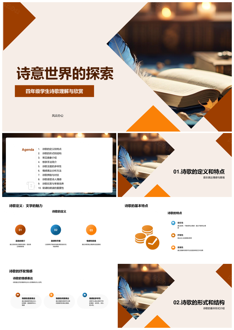 风云办公提供的四年级语文诗歌韵律意象探秘PPT模板,下载格式为pptx,一共42页,作品中文字及图均可以修改和编辑,图片更改请在作品中右键图片并更换,文字修改请直接点击文字进行修改。