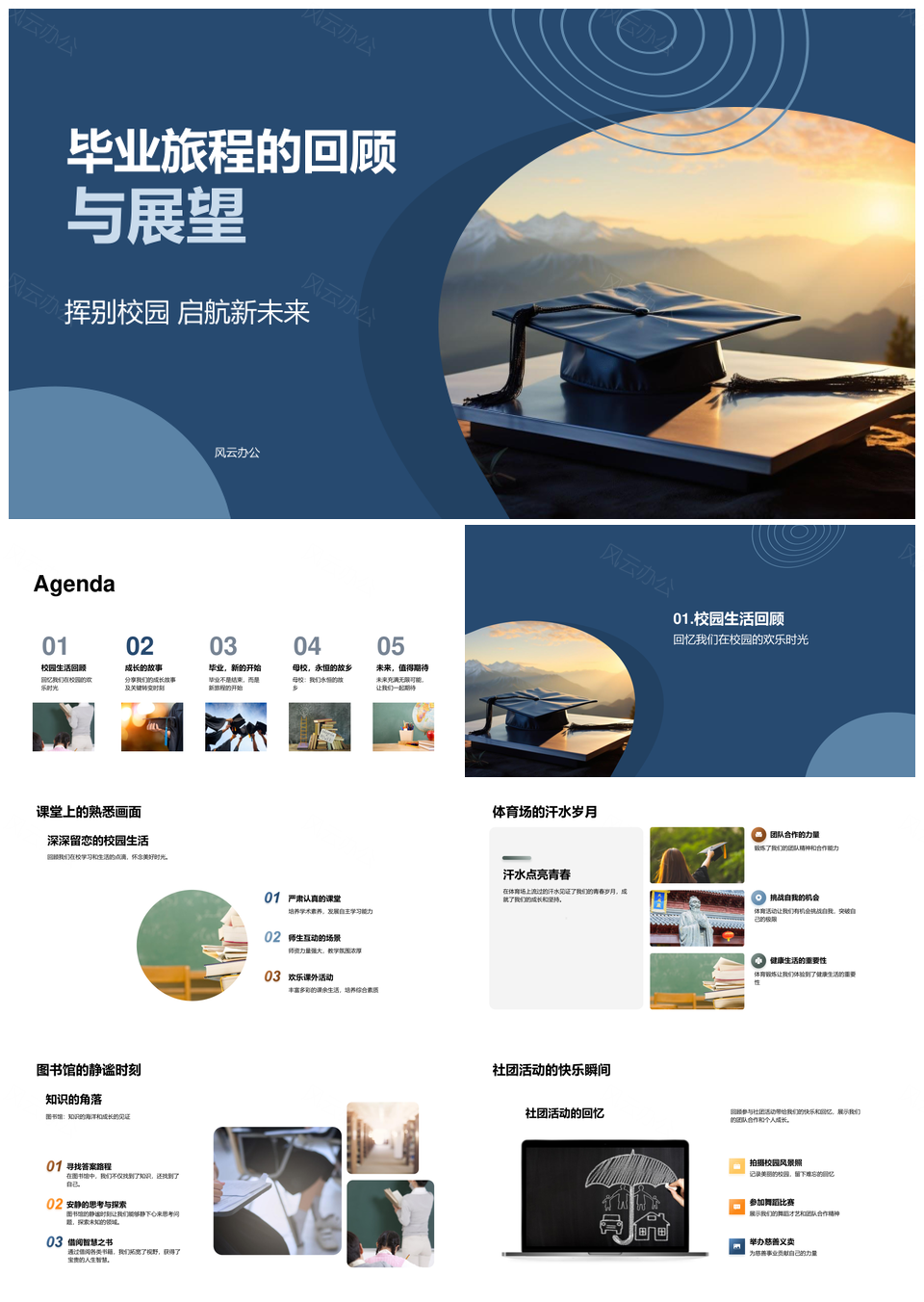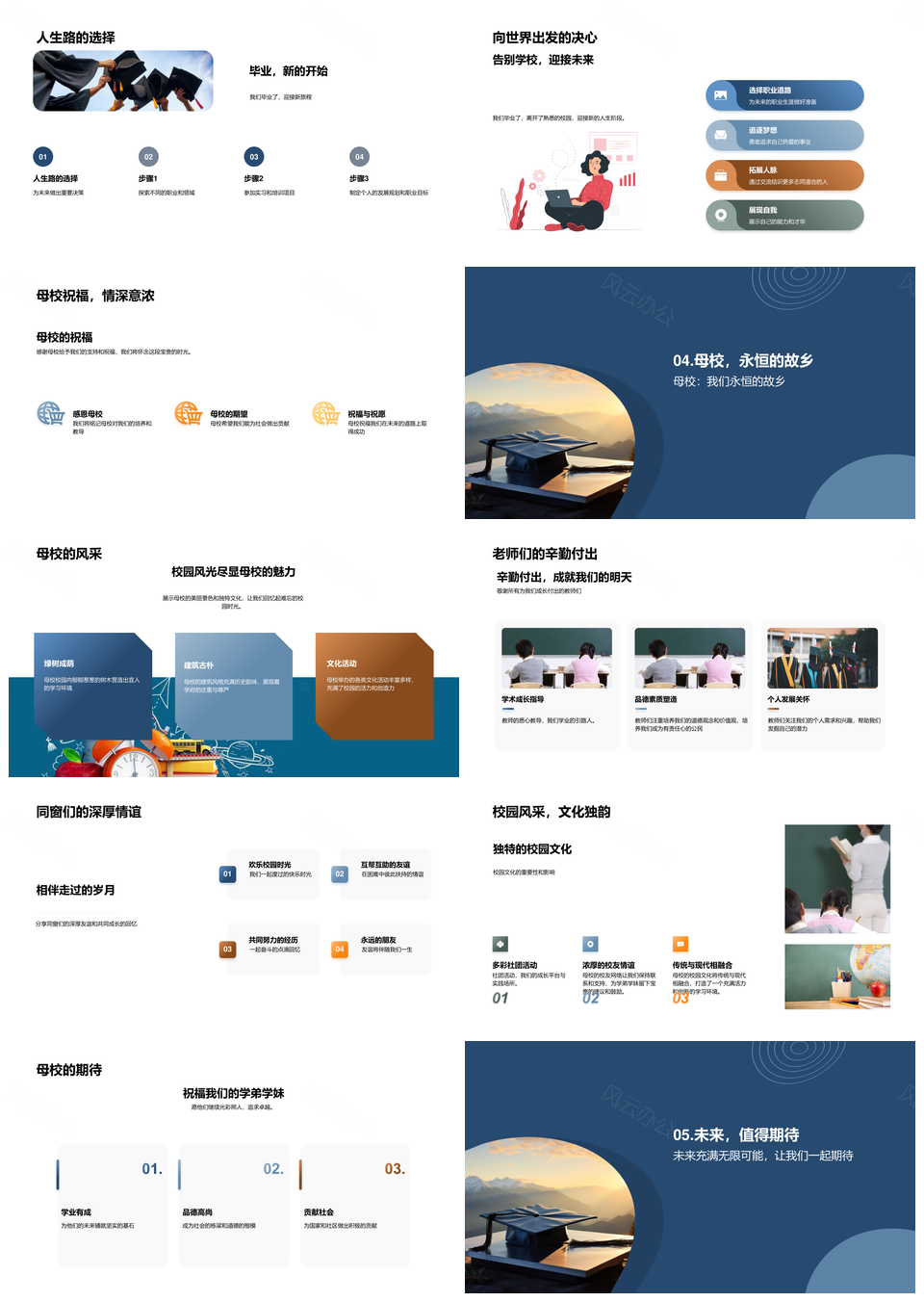 风云办公提供的毕业帽母校成长实践志愿迎挑战PPT模板,下载格式为pptx,一共33页,作品中文字及图均可以修改和编辑,图片更改请在作品中右键图片并更换,文字修改请直接点击文字进行修改。