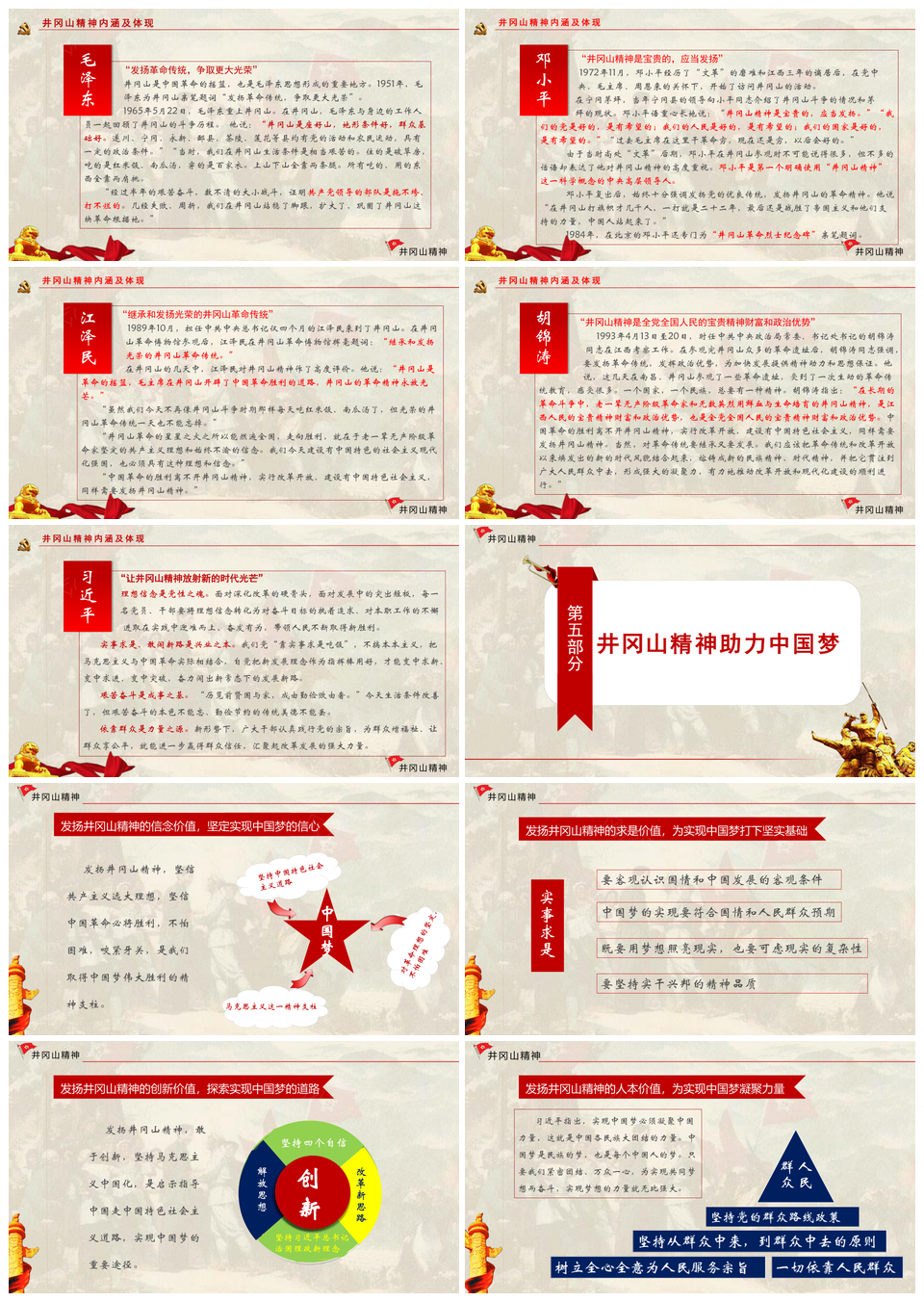 这是一张彩色弘扬井冈山精神助力伟大中国梦PPT模板,包含彩色、弘扬、井冈山精神、助力、伟大、中国梦等主题内容,也可用作彩色弘扬井冈山精神、弘扬井冈山精神助力、井冈山精神助力伟大、精神助力伟大中国梦、弘扬井冈山精神、井冈山精神助力、精神助力伟大、助力伟大中国梦、井冈山精神、助力伟大、伟大中国梦等PPT场景使用。