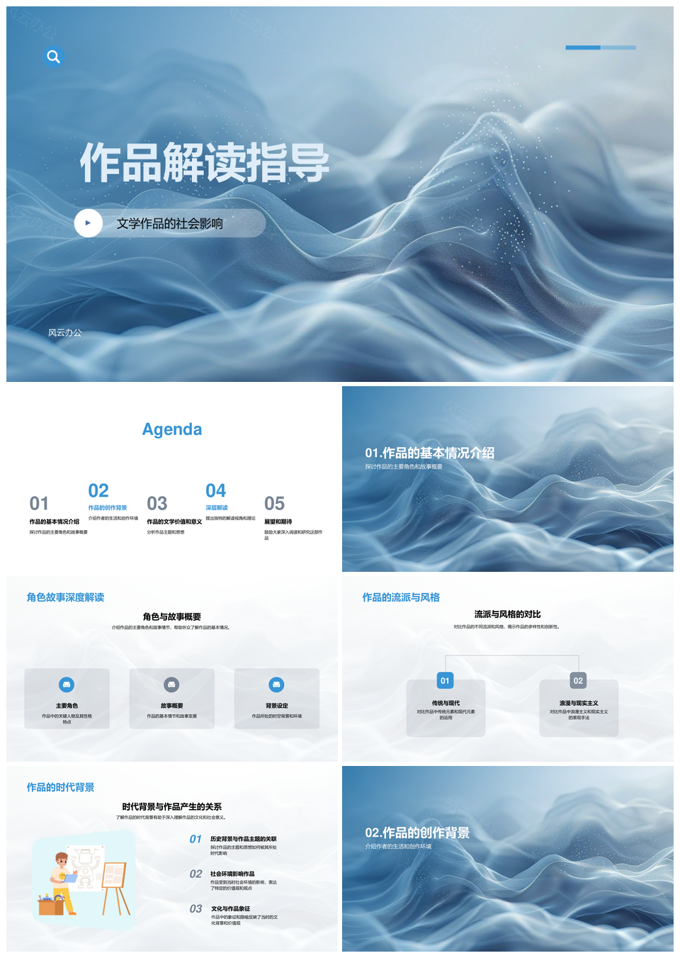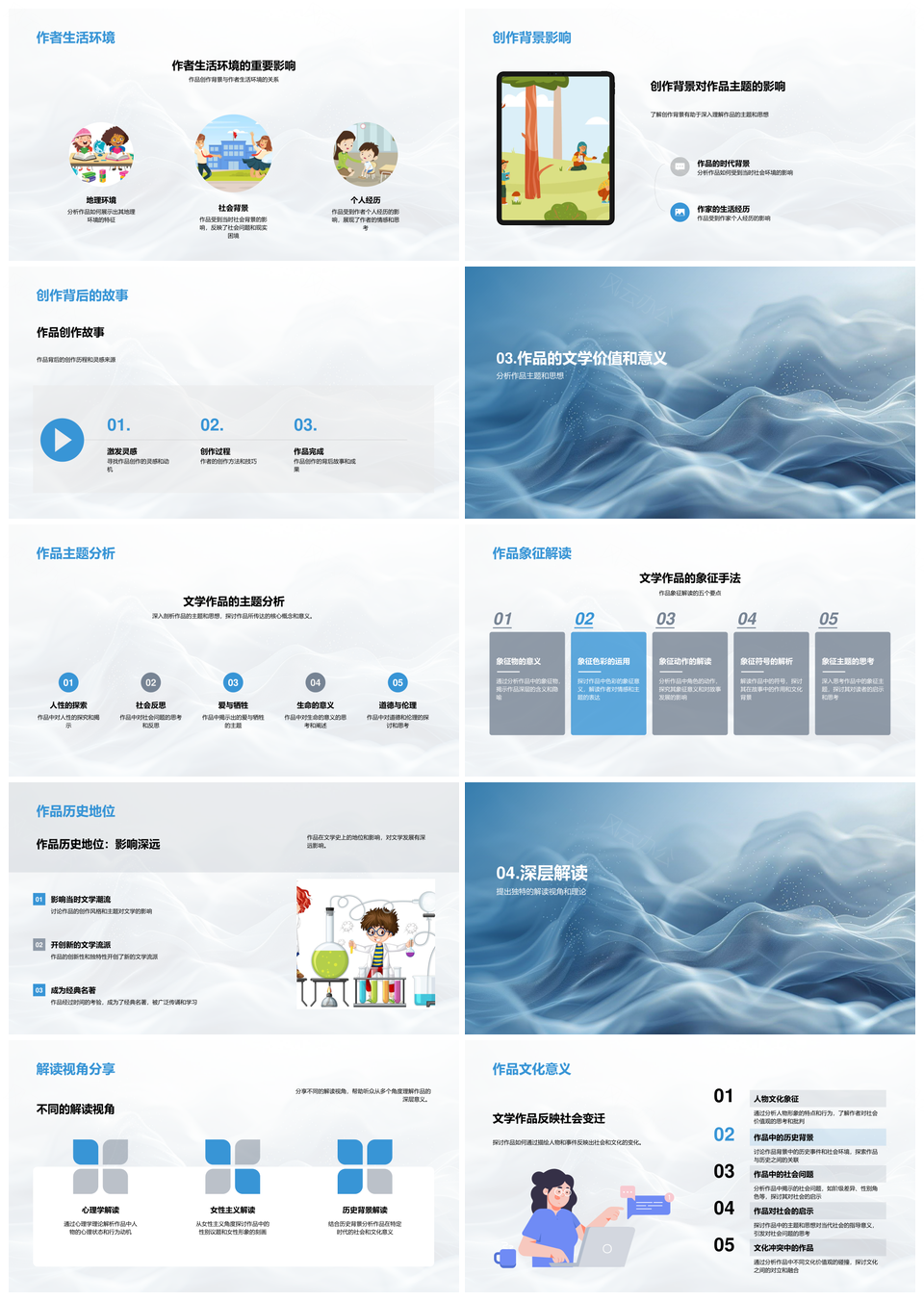 文学作品社会流派时代创作角色解析指导PPT模板推荐