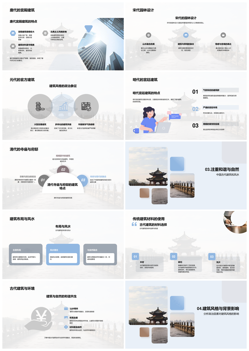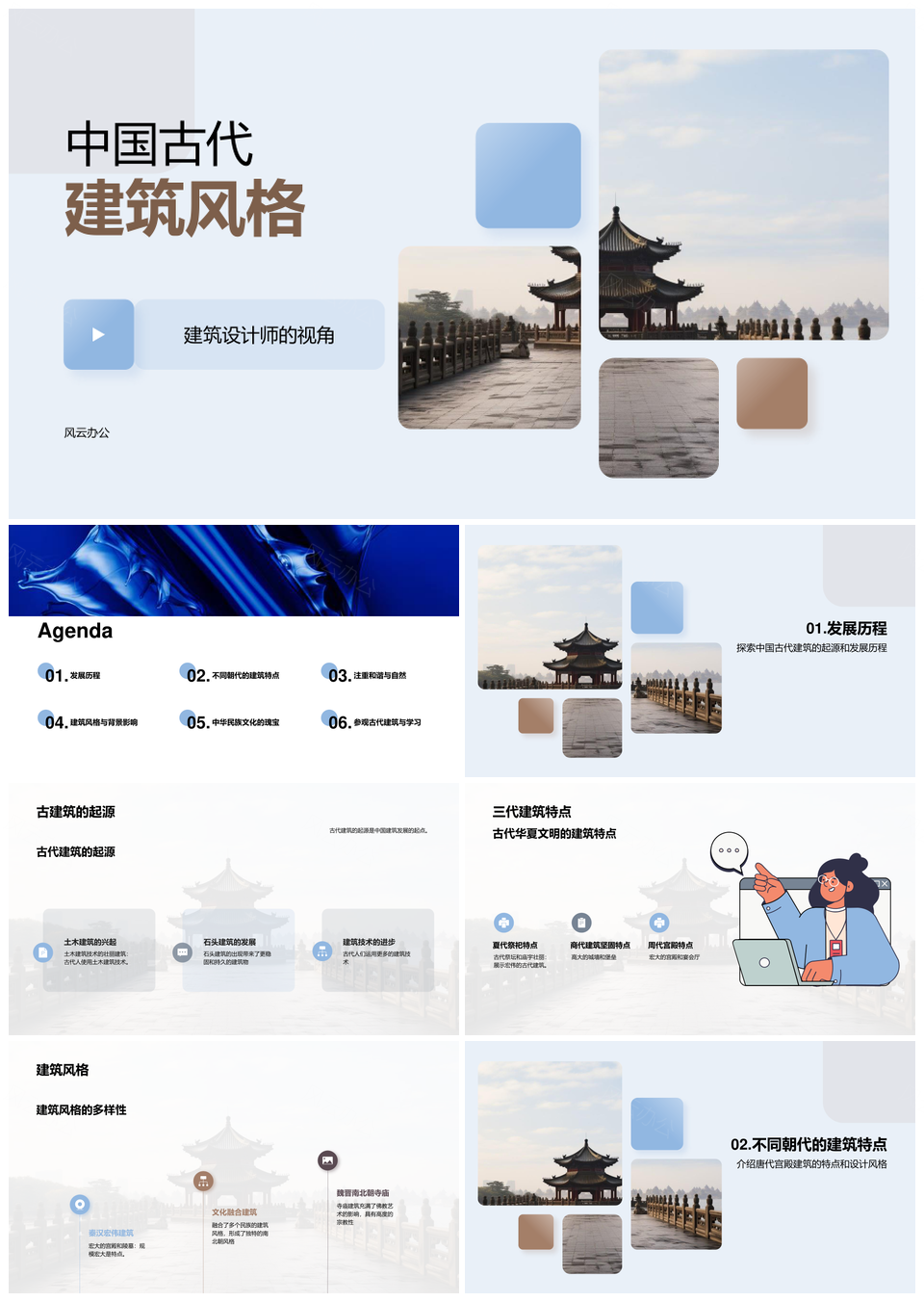 中国古代建筑设计师与三代风格发展历程PPT模板推荐